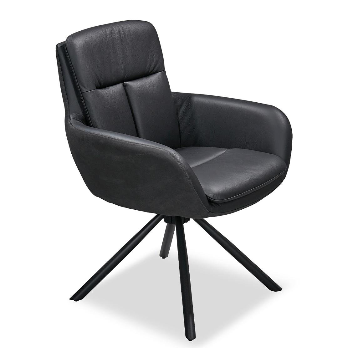 Открийте свободата на движение с въртящата се на 360° функция и автоматично връщане. Тя Ви позволява лесно да се включвате в разговора или да ставате без усилие. Здравата метална основа гарантира стабилност и дълготрайност, а черното прахово покритие придава модерен завършек.