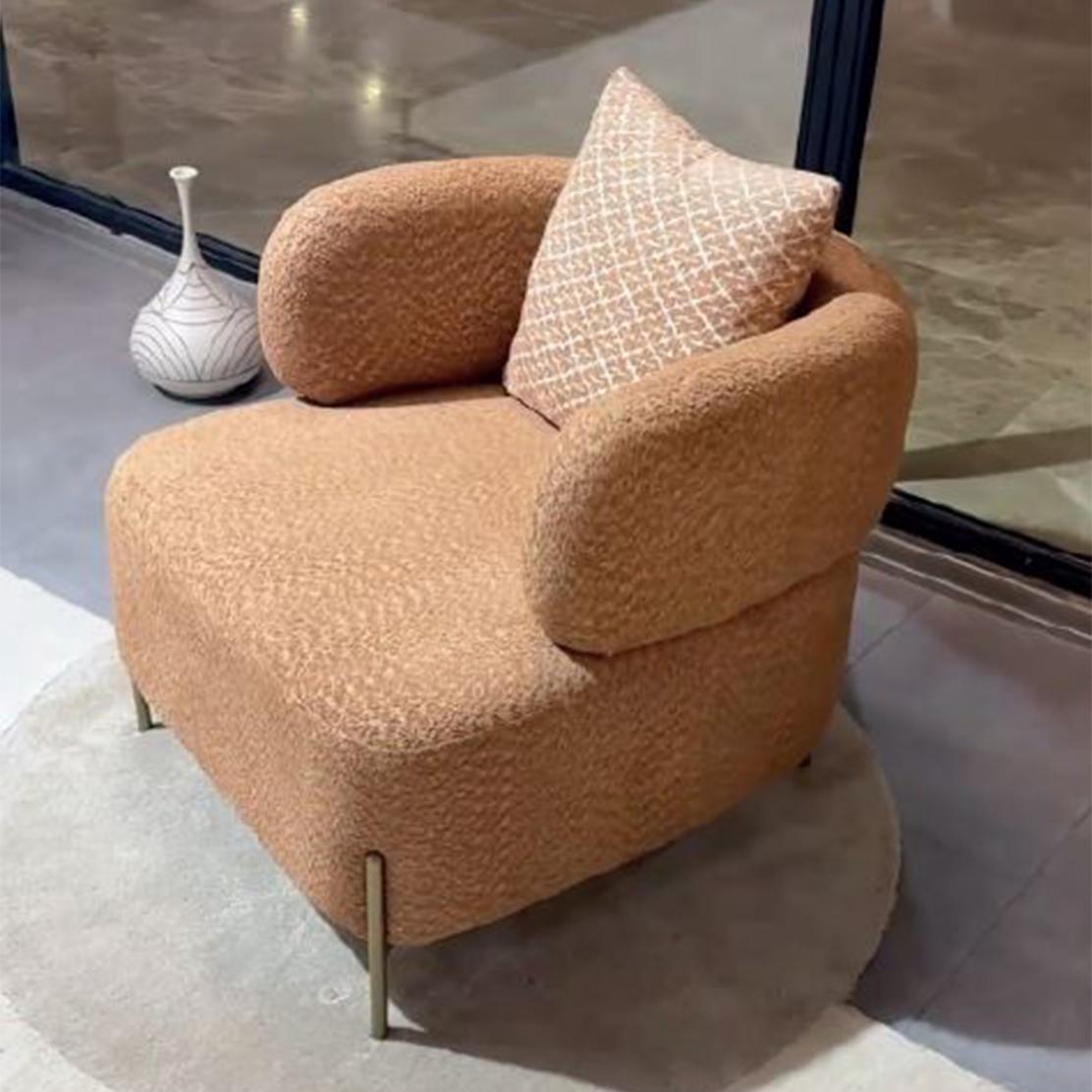 • Материали: Здрава дървена конструкция; Висококачествена букле тапицерия; Метални крака.