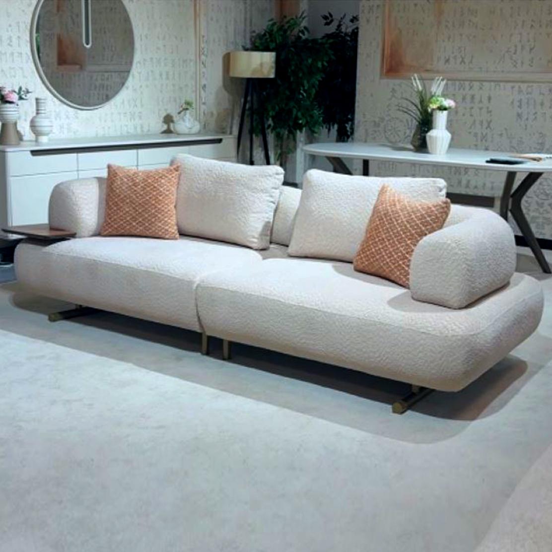 Потопете се в съвършен комфорт с триместен диван ANKA. Неговият изящен дизайн и обгръщащи форми създават оазис за релакс. С щедрите си размери и практична интегрирана странична масичка, ANKA е повече от диван – тя е централен елемент за всекидневната.