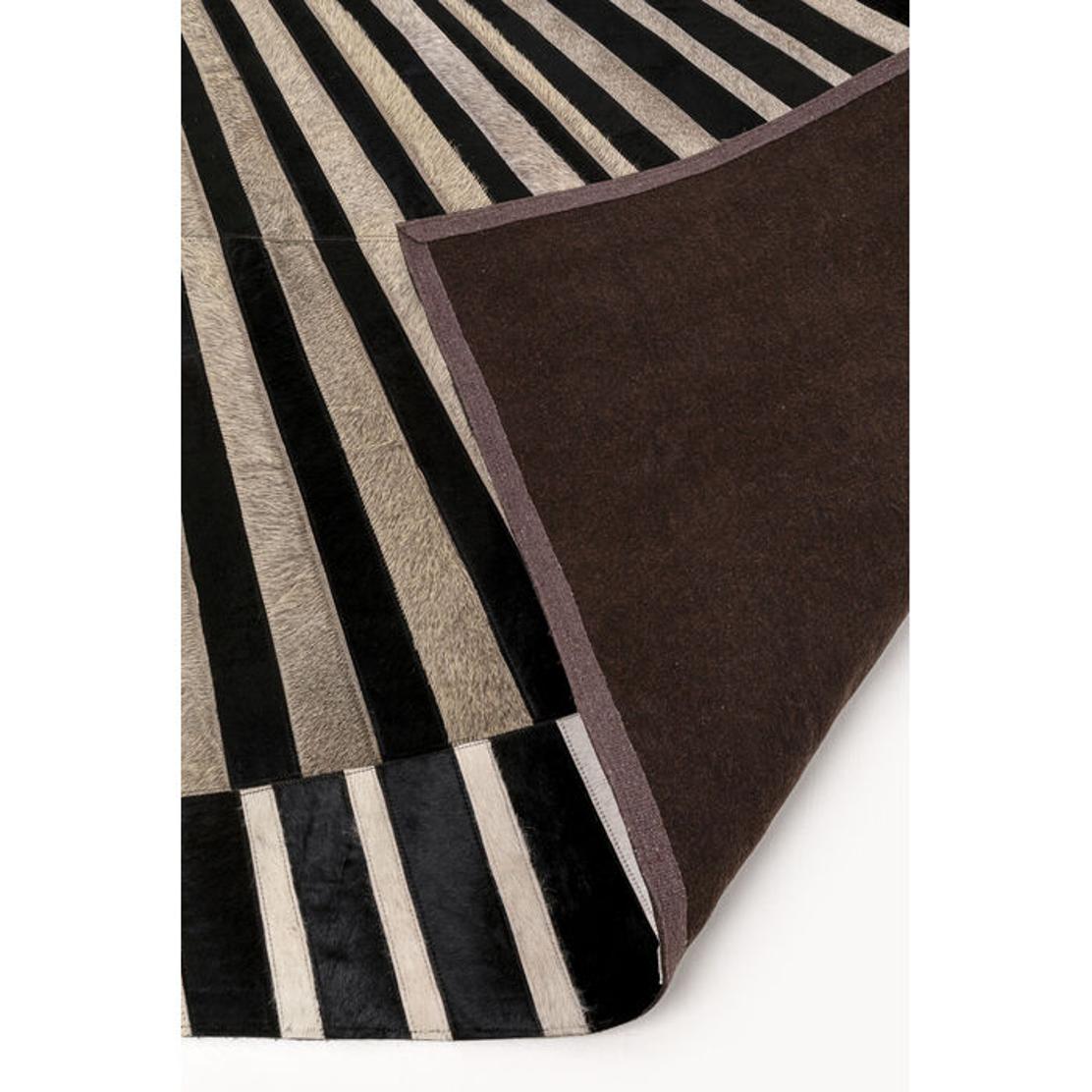 Обратната страна: 100 % вълна, горна страна: 100 % покрита с кравешка / волска кожа (металиково фолио), ръчно изработена, всяко парче уникално, химическо чистене