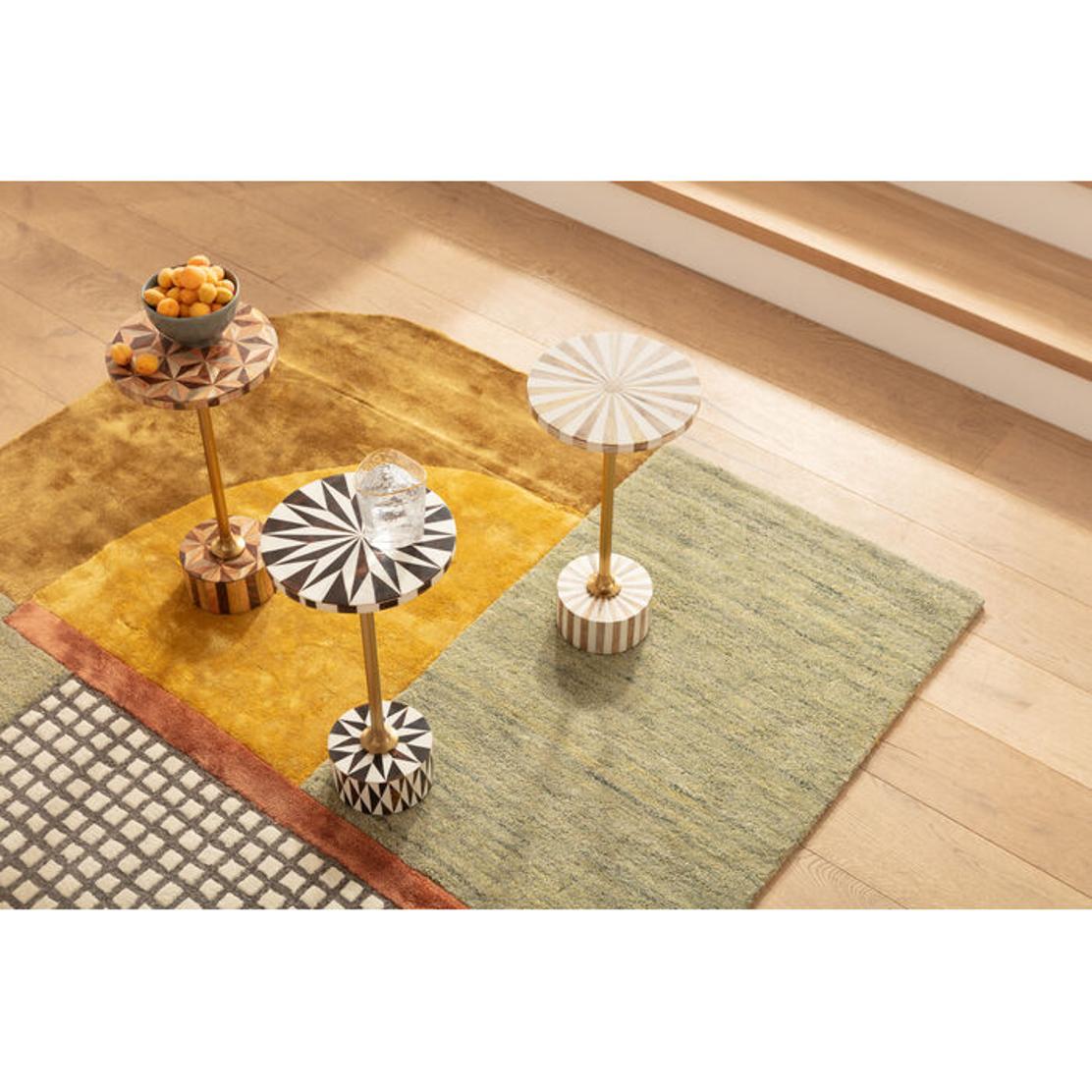 Ръчно изработени шарки по основата и отгоре в кафяво и бяло правят всяка малка маса уникална част