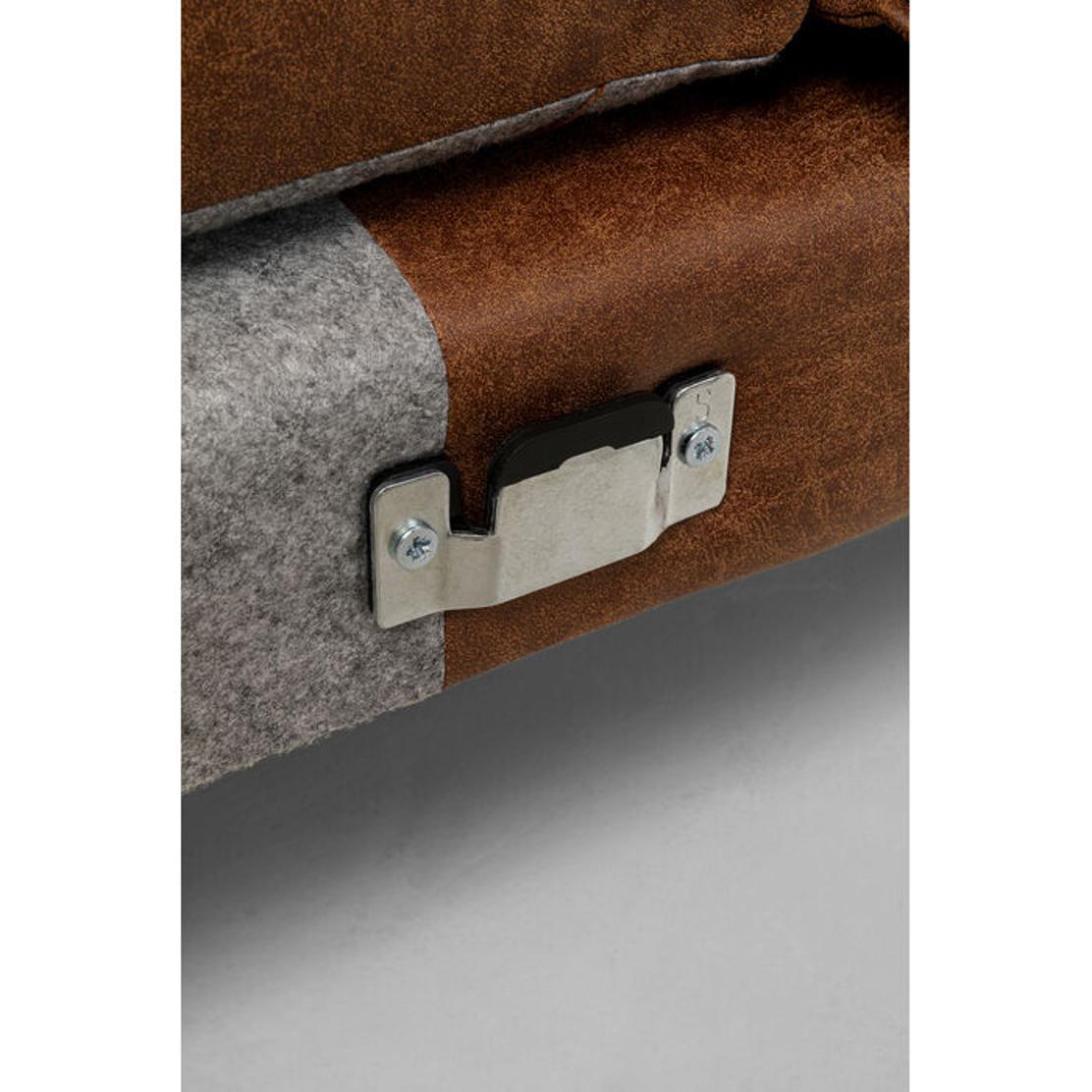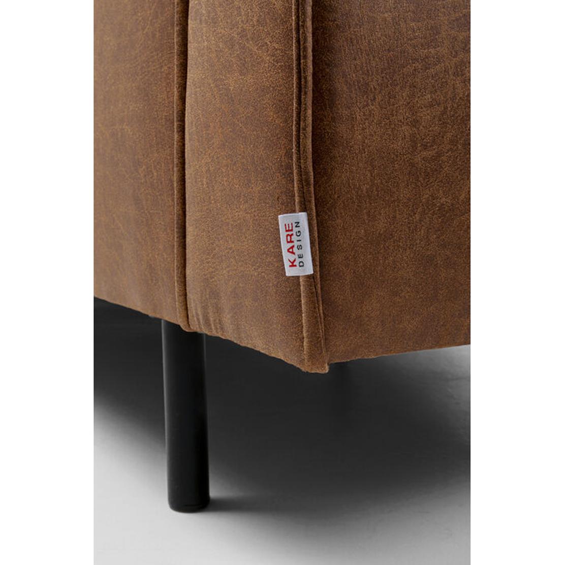 Този голям диван впечатлява с ясния си дизайнерски език и тапицерията от винтидж кожа в топло кафяво