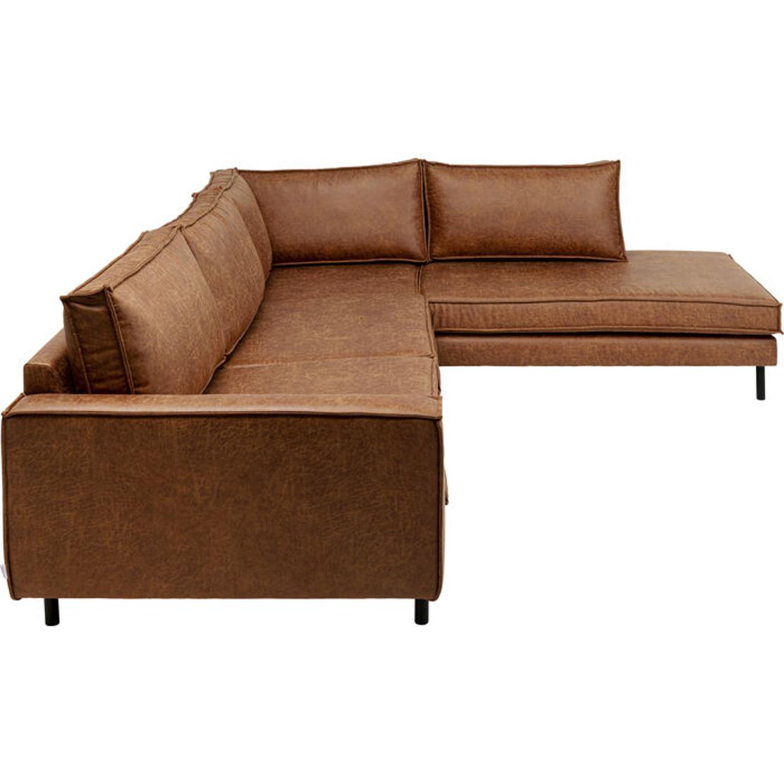 Кафяв ъглов диван с шезлонг вдясно в кожен вид, 84 x 288 x 219 сантиметра (H/W/D)