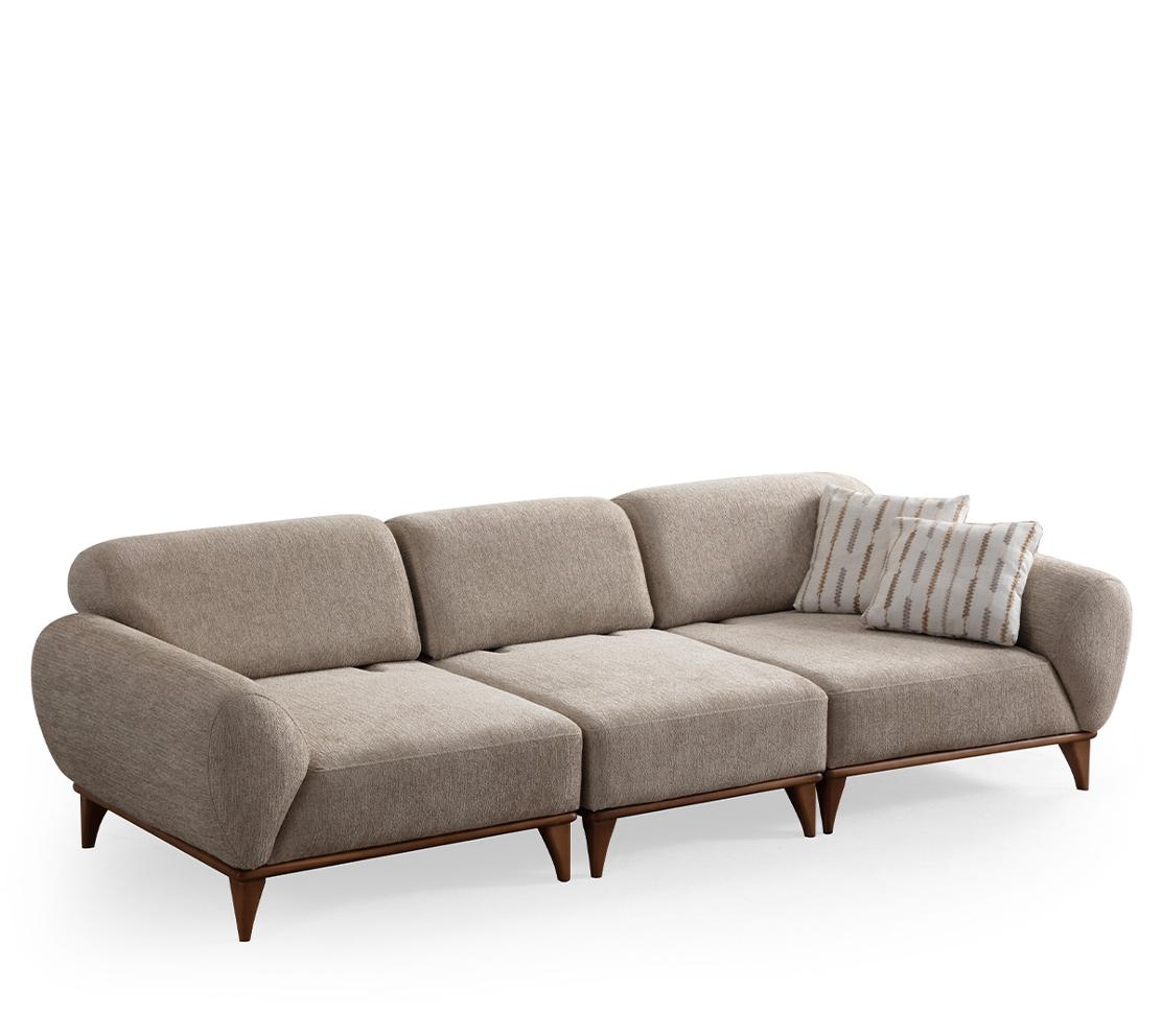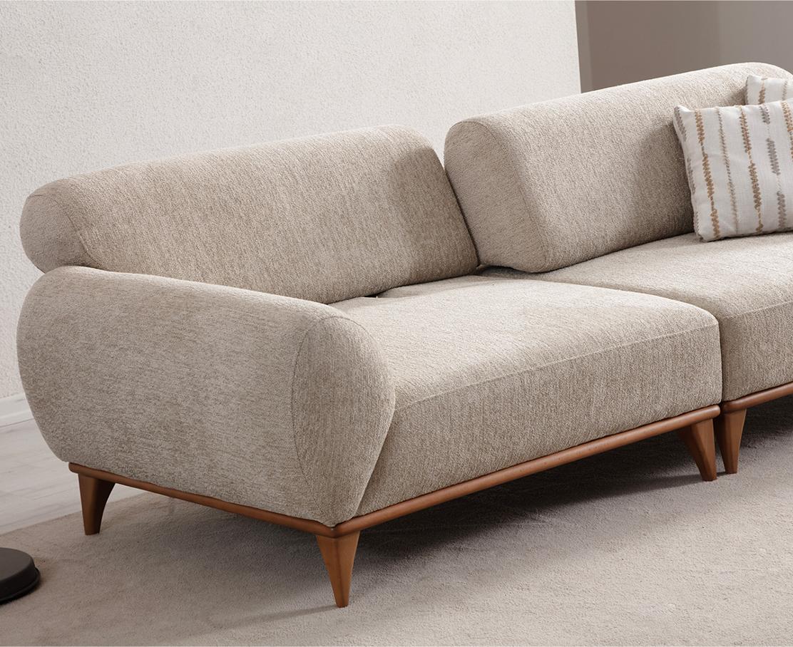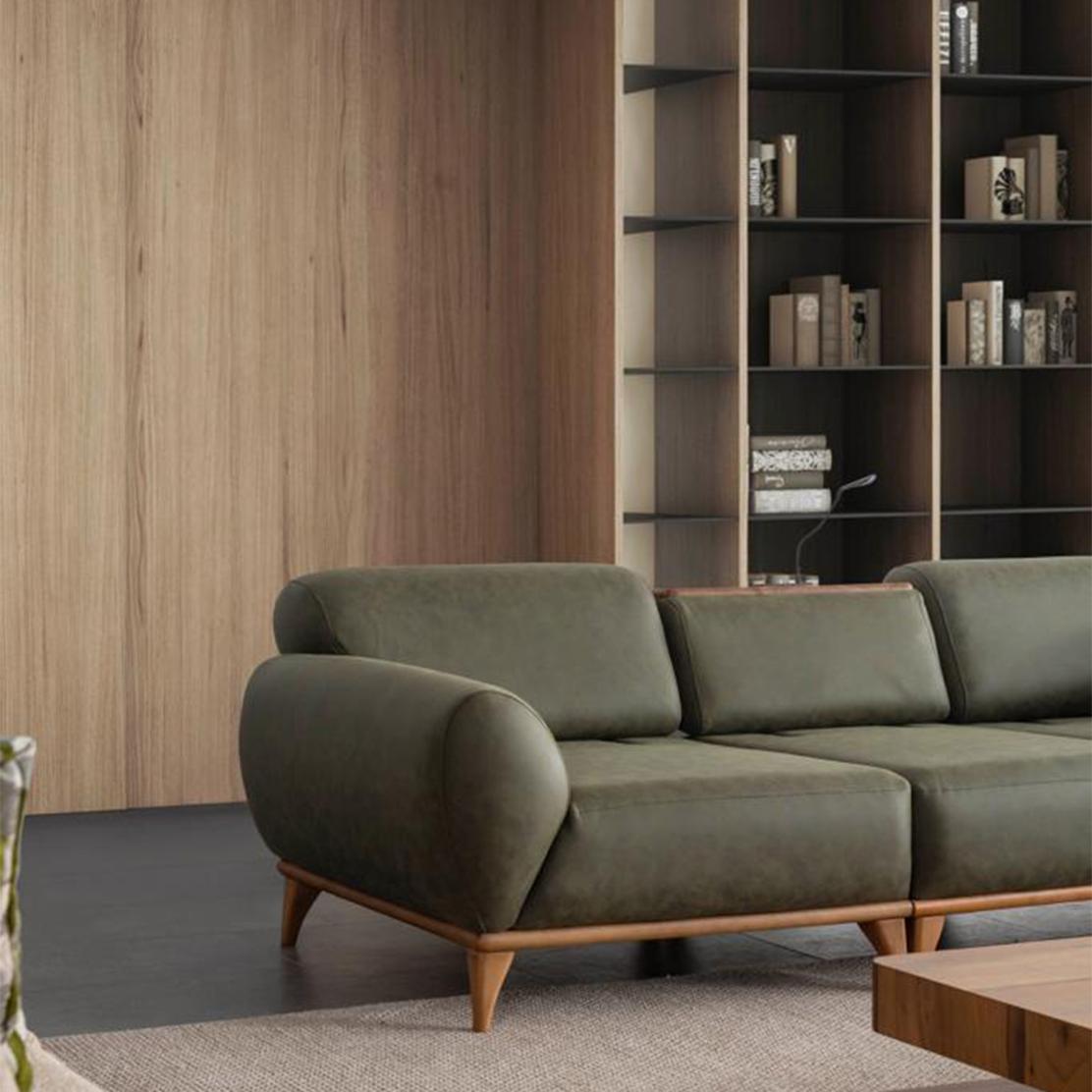 Barcelona впечатлява с плавно заоблените подлакътници, балансираните пропорции и леката линия на дървените крака. Този модел е идеален за по-големи дневни пространства, като осигурява комфорт при четене, семейно кино или събирания с приятели.
