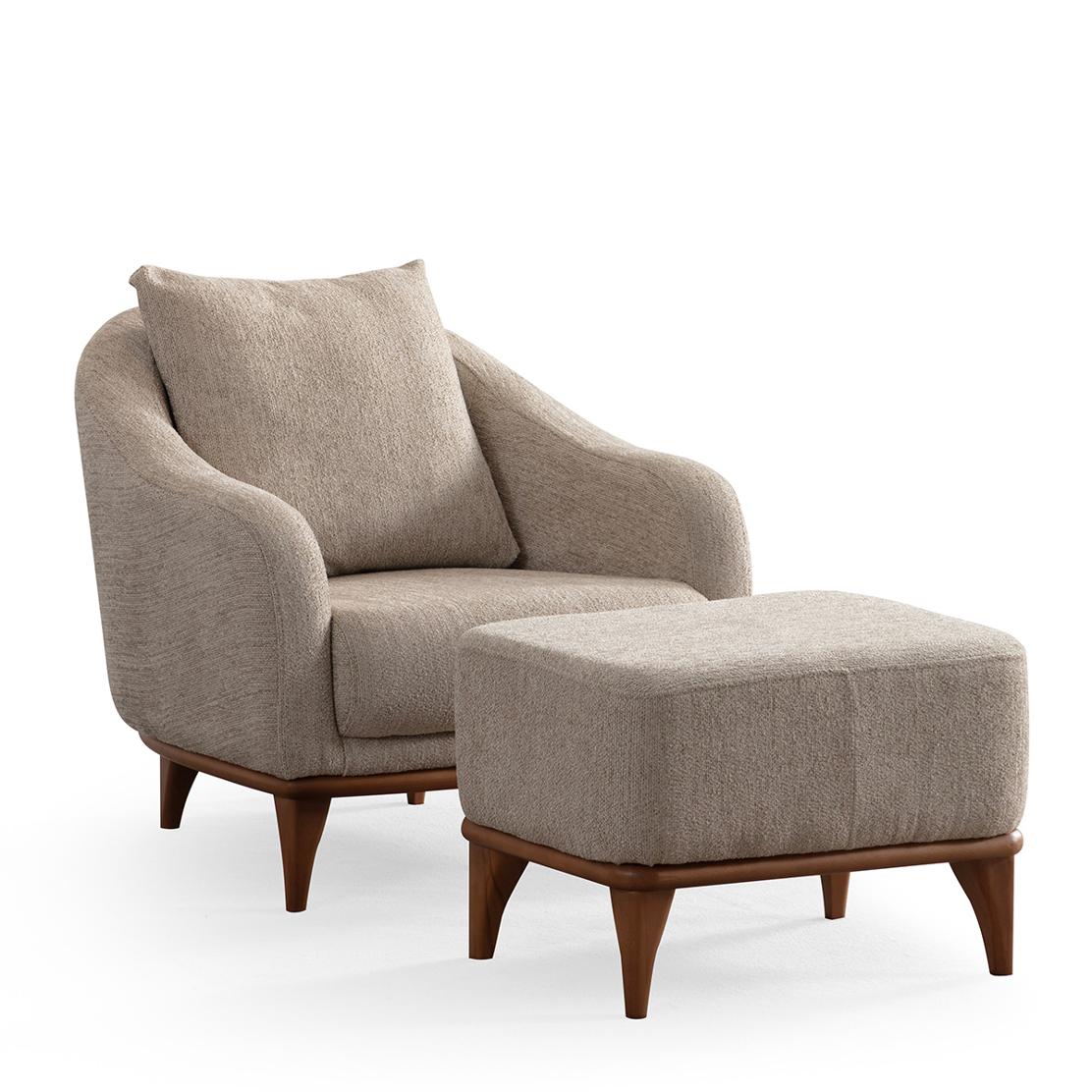 Табуретка Barcelona може да служи като подложка за крака, допълнително място за сядане или малък акцент в дневната. Хармонично се комбинира с дивана и креслото от серията, но е достатъчно универсална и за самостоятелно позициониране в различни стилове интериор.