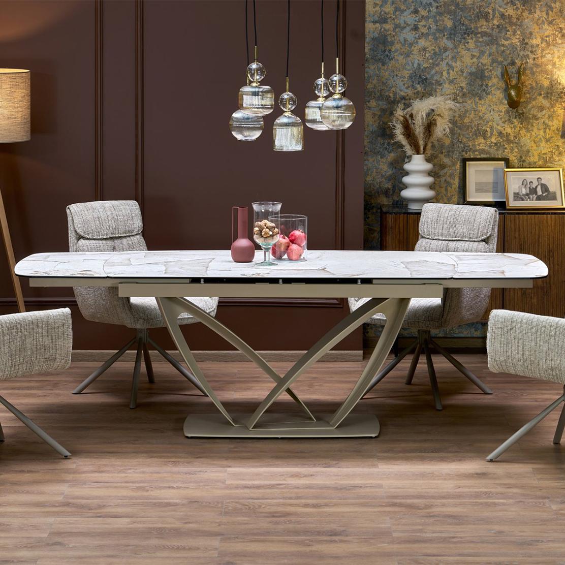 Елегантна разтегателна трапезна маса BENJAMIN с керамичен плот и модерен дизайн