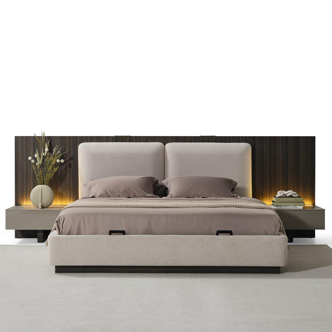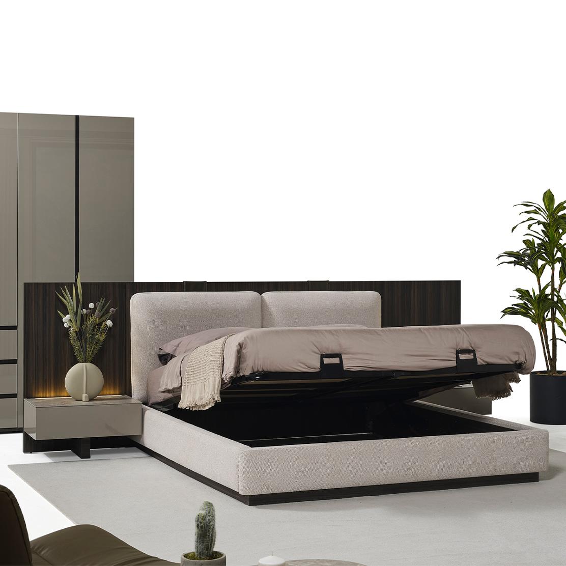 Насладете се на оптимално използване на пространството благодарение на вградения механизъм за съхранение. Лесно повдигане разкрива обемно място за вещи, поддържайки реда без усилие. Легло BIEN е идеалното съчетание на красота и функционалност, проектирано за съвременния дом.