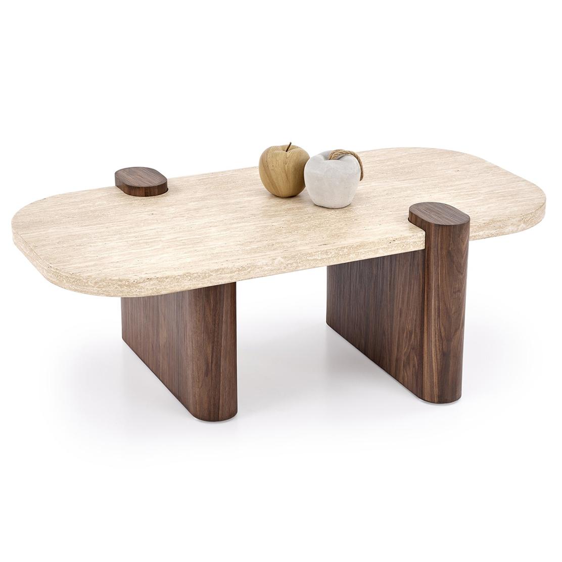 CANOA Холна маса: Травертин и фурнир орех – изящество за модерния дом