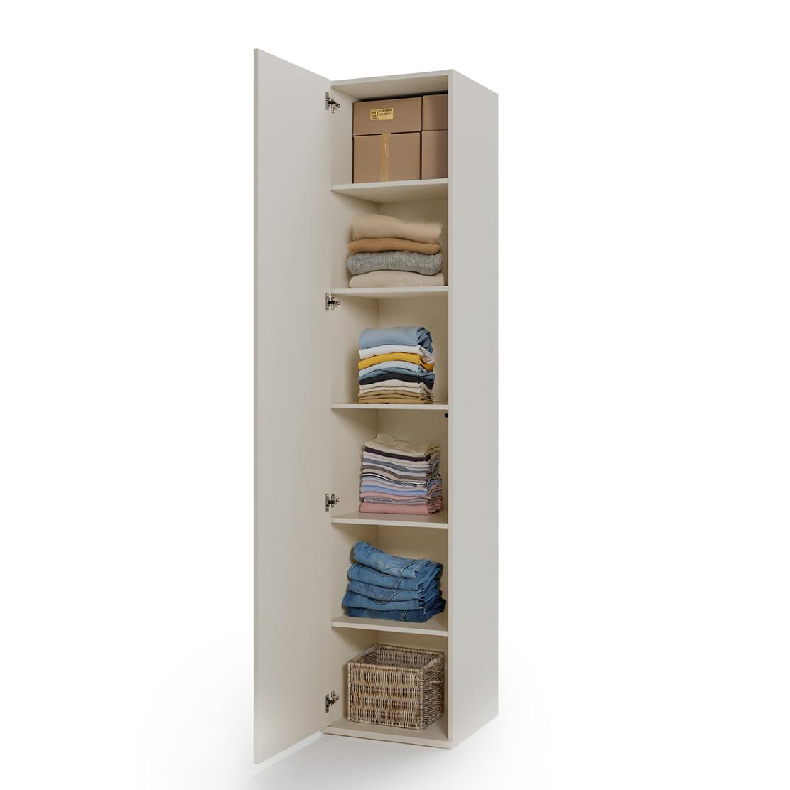 Със своите седем просторни рафта, този еднокрил гардероб предлага изключителна организация за вашите дрехи, аксесоари или домакински принадлежности. Ние в КАМКО знаем, че функционалността и стилът вървят ръка за ръка, за да създадете мечтания уют и подредба.