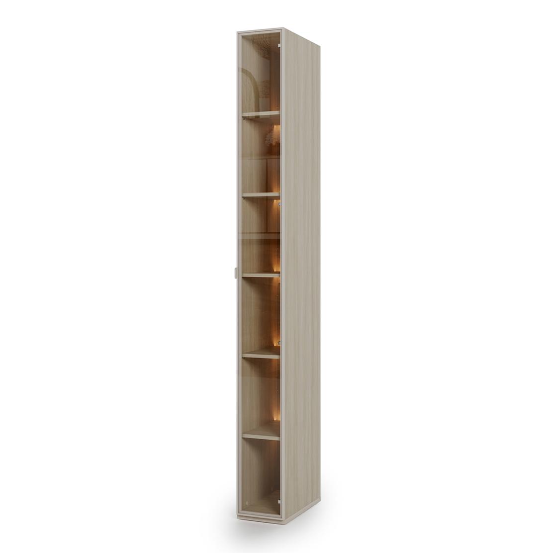 Шестте функционални отделения предлагат достатъчно място за организация, докато опцията за LED осветление елегантно подчертава любимите ви предмети. Добавете стъклена врата за защита и завършен вид, персонализирайки вашето пространство.