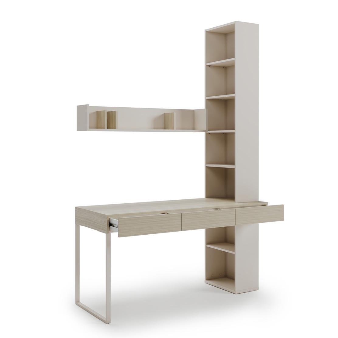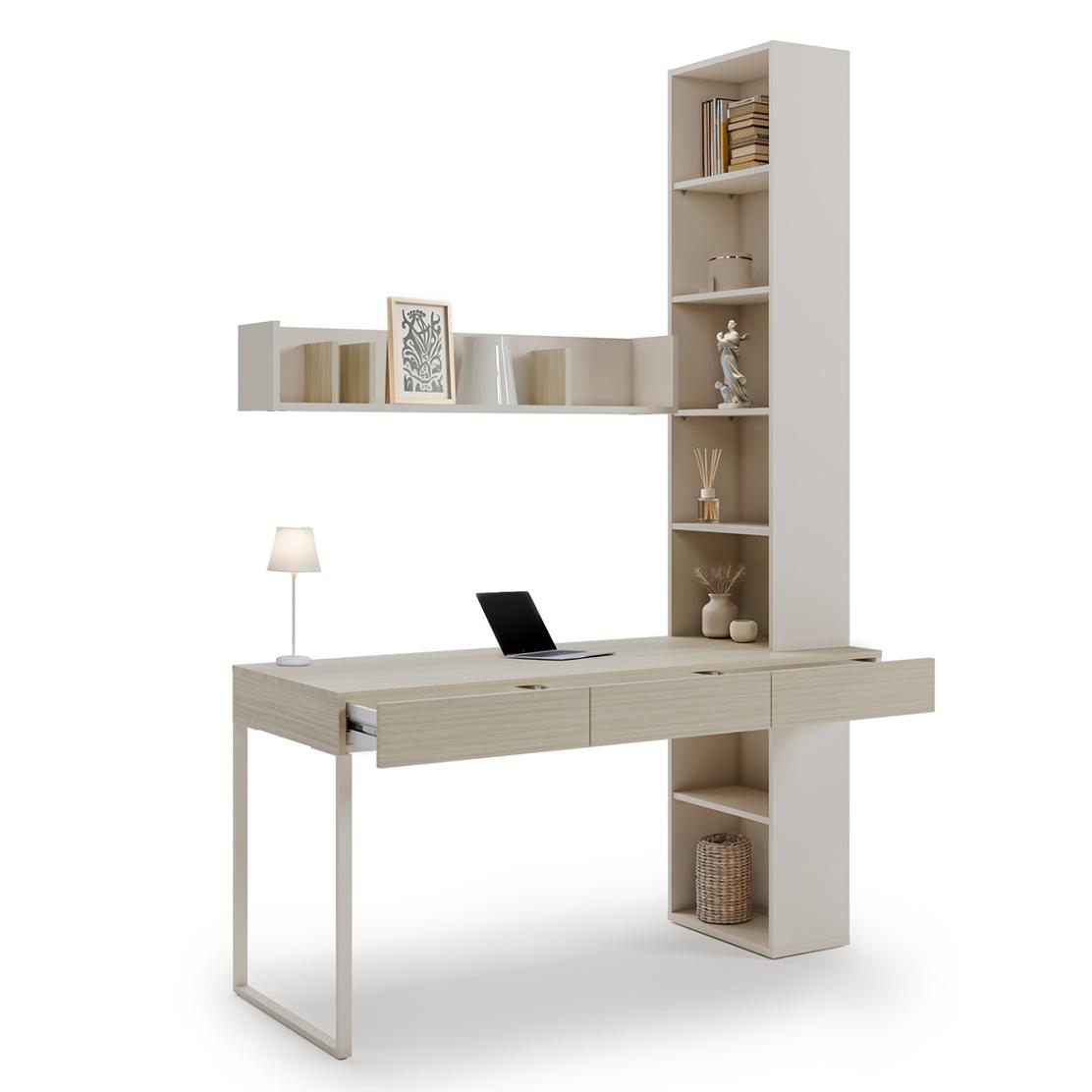 • Функционалност: Бюро с 3 чекмеджета, висока етажерка със 7 отворени рафта, хоризонтален рафт с 4 отделения.