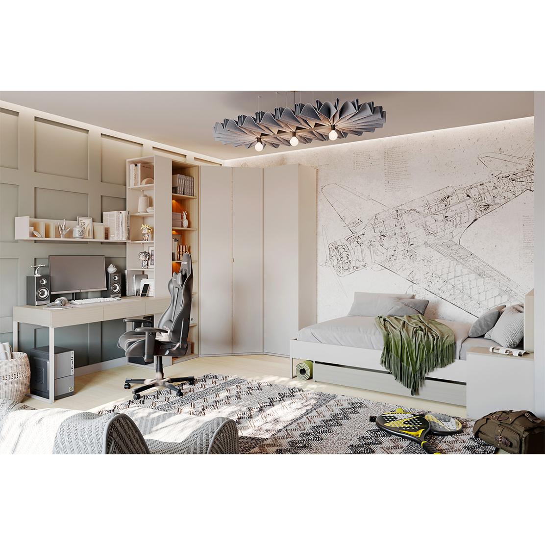 • Интегриран дизайн с бюро, етажерка и рафт за оптимално пространство.