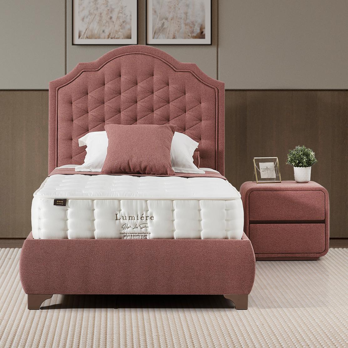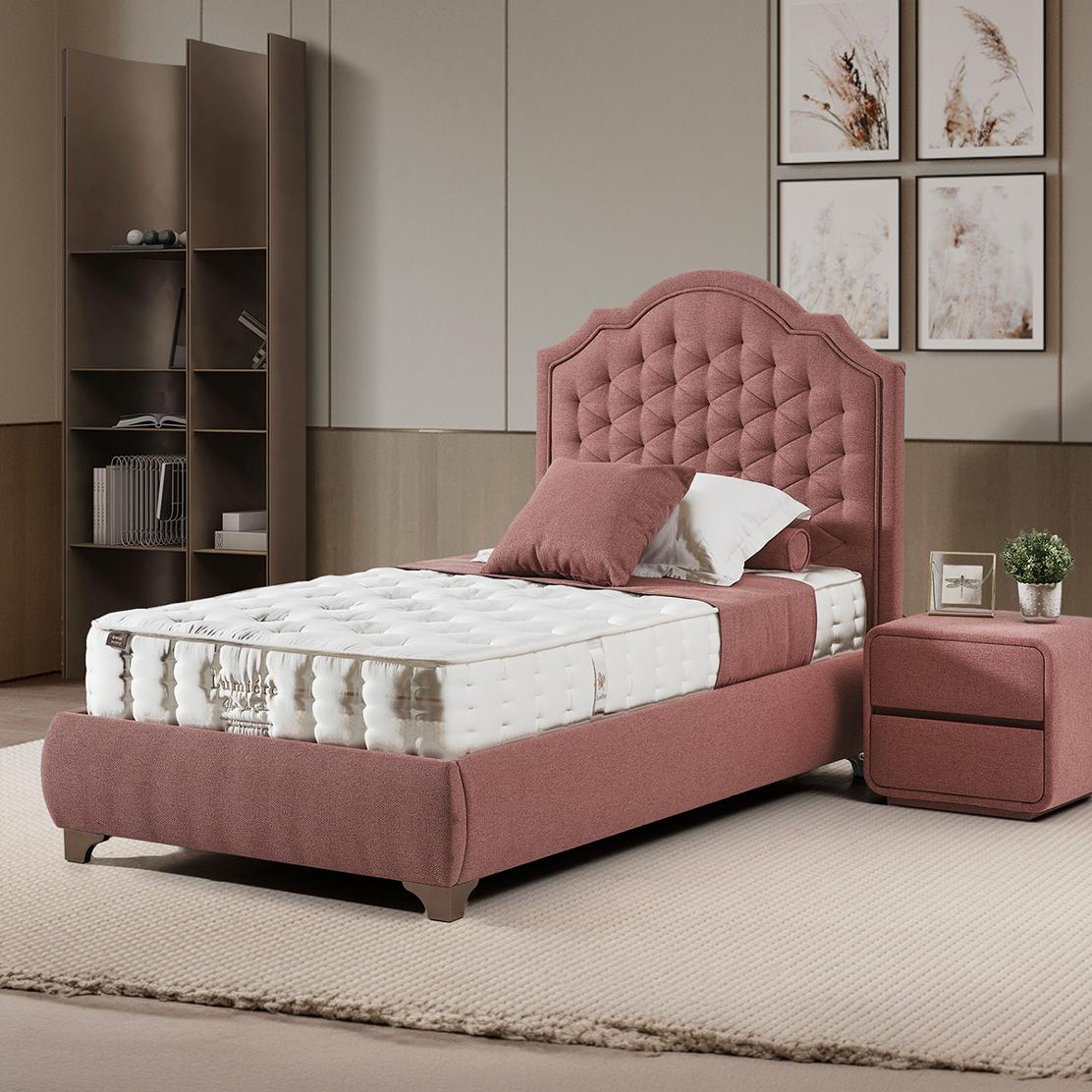Потопете се в свят на изискан комфорт с легло CINDY. Елегантната тапицирана табла с извити форми и изискан капитонаж ще преобрази спалнята ви в лично убежище, предлагайки ненадминато усещане за лукс и уют.