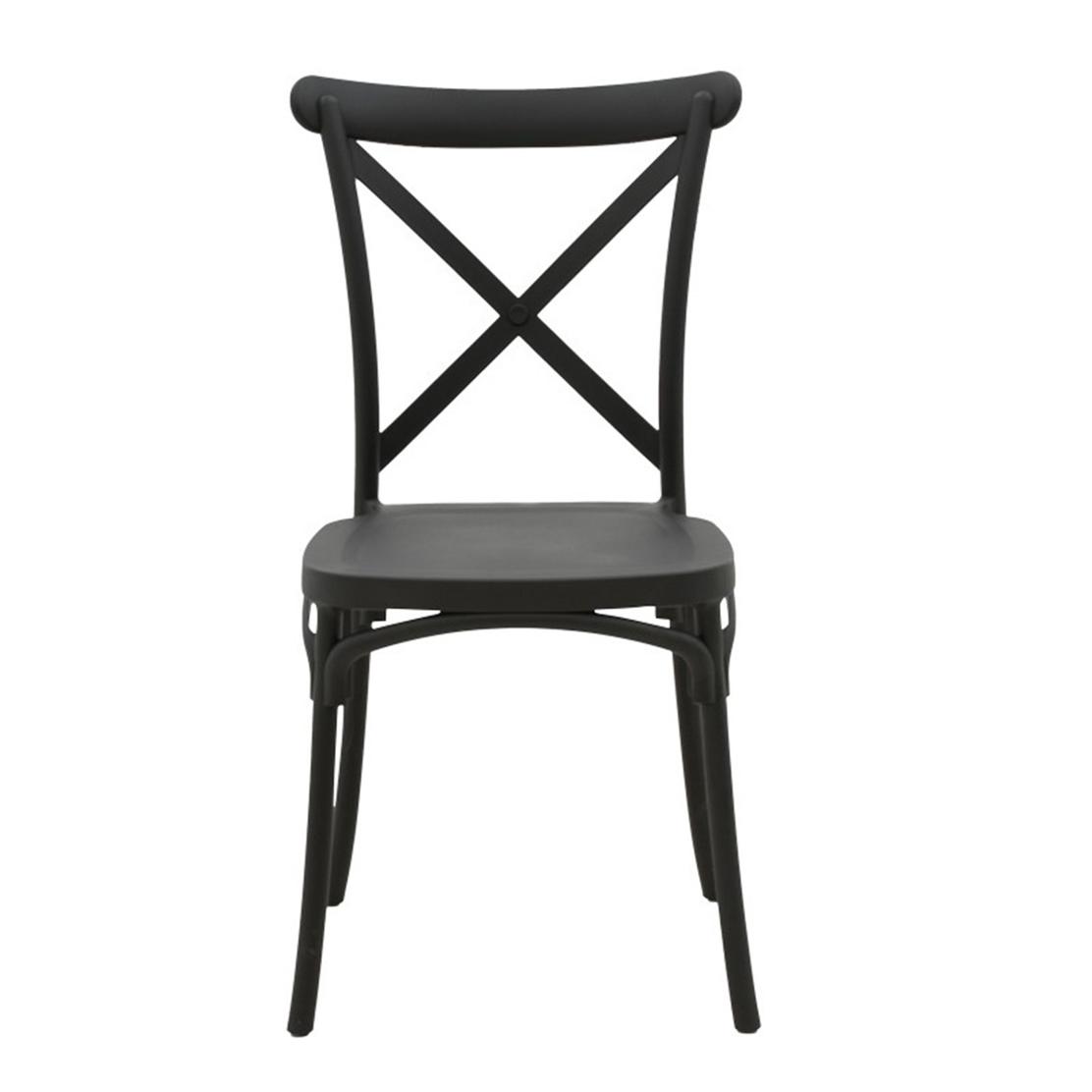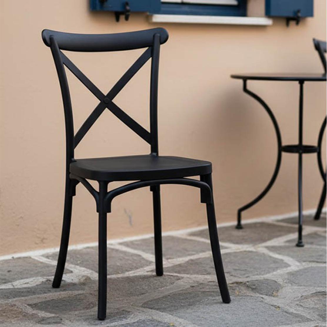 • Елегантен дизайн с кръстосана облегалка, подходящ за различни интериори и екстериори.