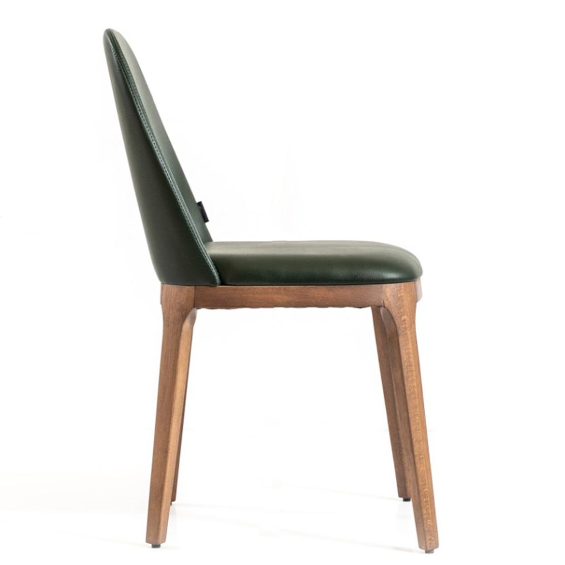 Представете си уютни вечери с близки, обгърнати от изтънчения комфорт на стола DAMLA. Неговият елегантен дизайн с рамка от масив бук и мека, тъмнозелена дамаска превръща всяко хранене в специално събитие. Насладете се на лукса, който заслужавате.