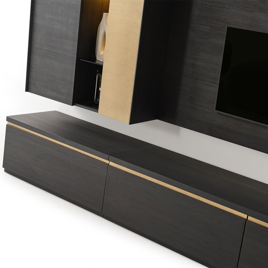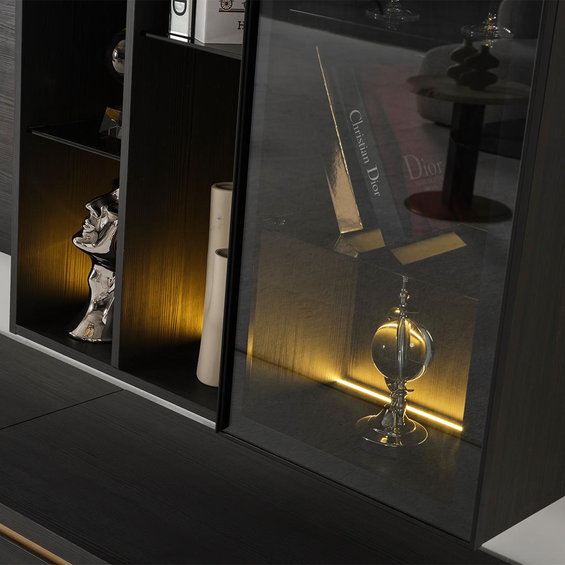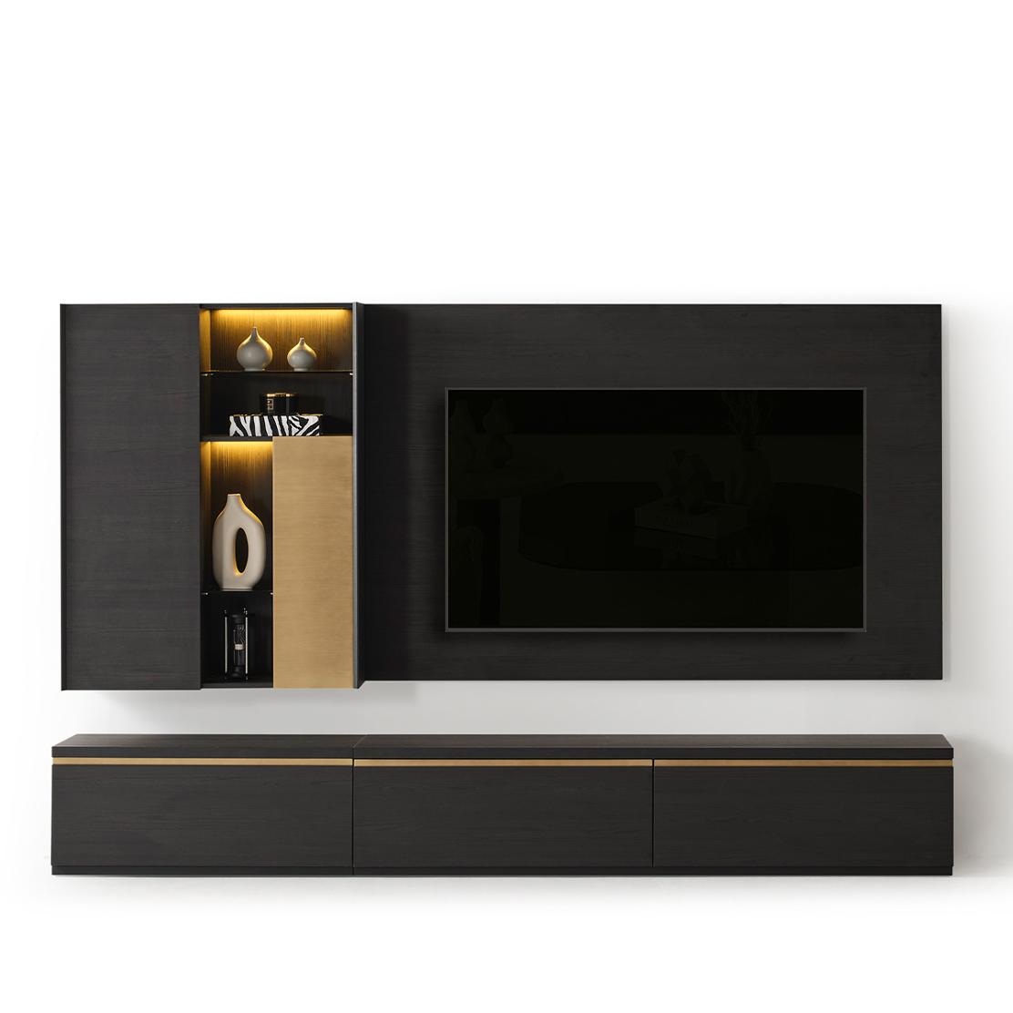 Модулна дневна е идеалното решение за съвременния дом. Тя се състои от тв шкаф, витринa и шкаф чекмедже, които могат да се комбинират по различни начини, в зависимост от пространството и предпочитанията ви. ТВ шкафът има достатъчно място за телевизор, декодер, конзола или други устройства, а витрината е подходяща за съхранение на книги, сувенири, посуда или други аксесоари. Витринита има стъклена врата, която придава елегантност и лекота на мебелите. Модулна дневна е изработена от качествени материали и има модерен, стилен и изискан дизайн, който ще се впише перфектно във вашия интериор.