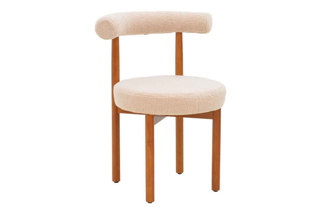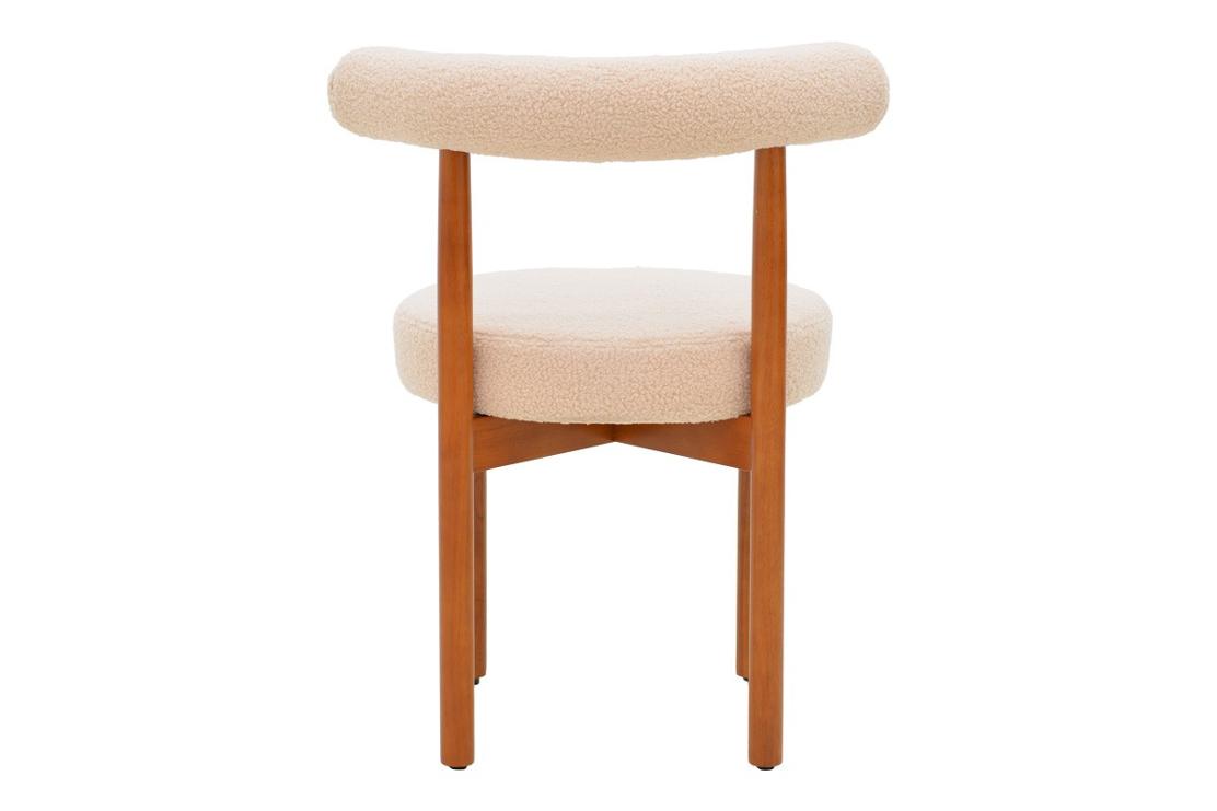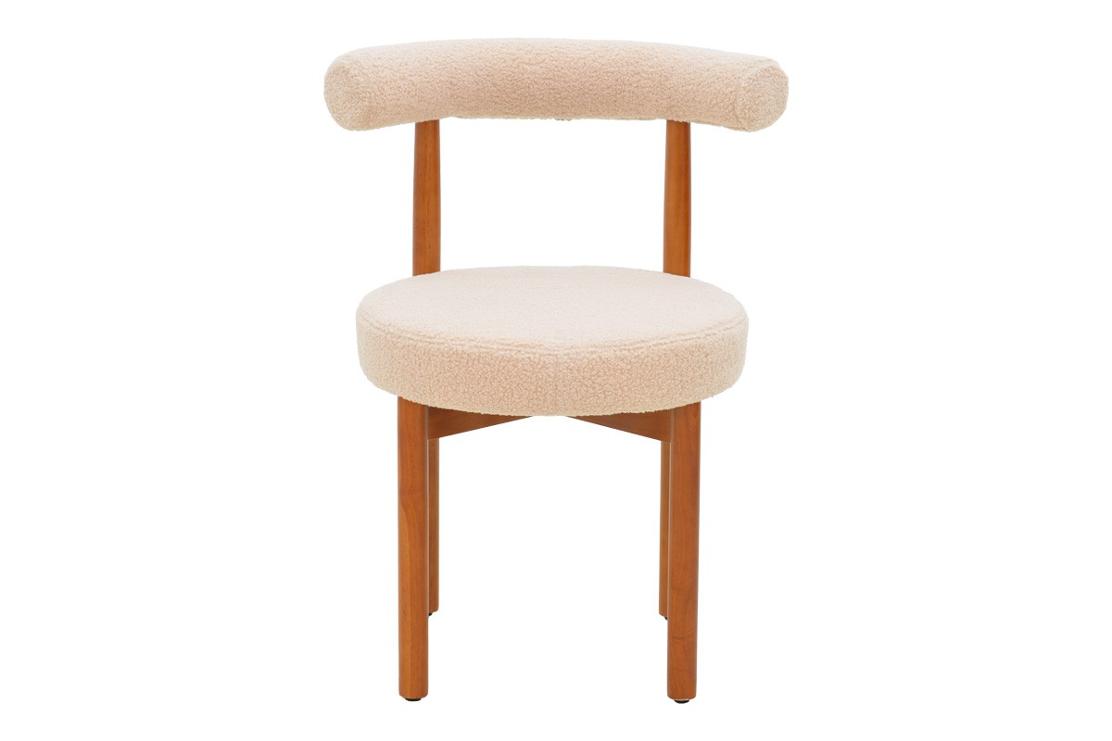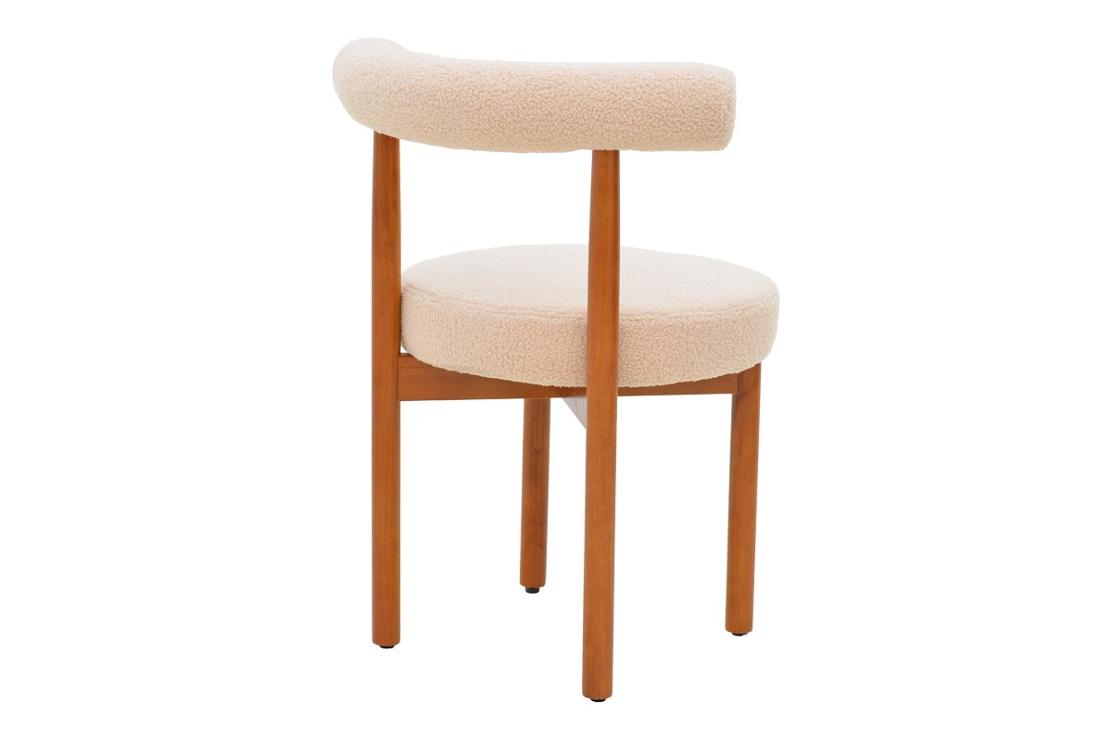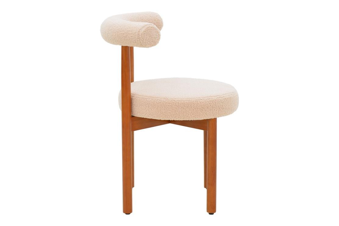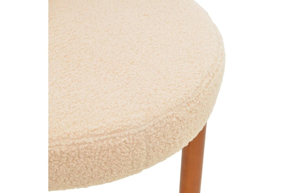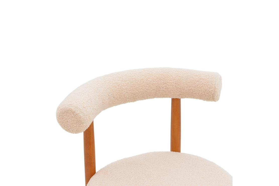 - Тапицерия: Облегалката и седалката са покрити с мека букле материя, която създава усещане за топлина и елегантност.