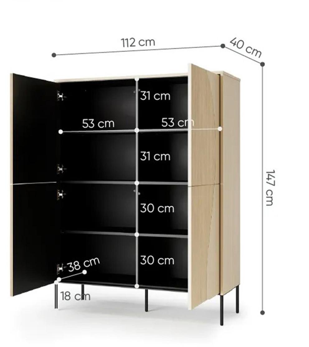 Изработен от висококачествено ПДЧ в цвят дъб виенченца, FLOW FW-02 е не само красив, но и изключително издръжлив. Тънките метални крака улесняват почистването, а просторното вътрешно пространство предлага перфектно решение за подредено съхранение на вещите ви.