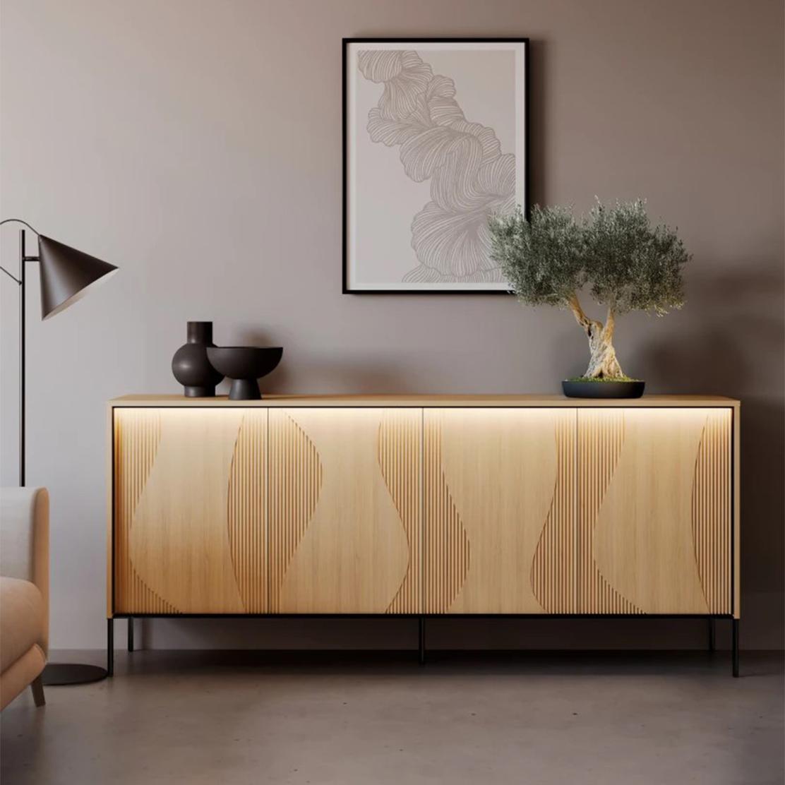 Модерен скрин FLOW FW-04 с LED: Дизайн, уют и просторно съхранение за вашия дом.
