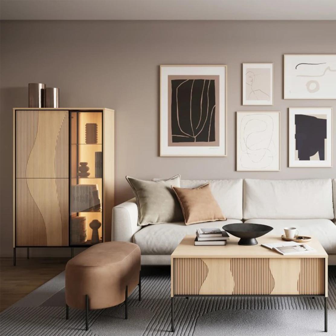 Представяме Ви модулна дневна FLOW, която преобразява пространството с уникален дизайн в дъб виенченца. Съчетавайки елегантност и практичност, тази колекция вдъхва живот във вашия дом, предлагайки хармония и стил. Всяка част е грижливо изработена за дълготрайна красота.