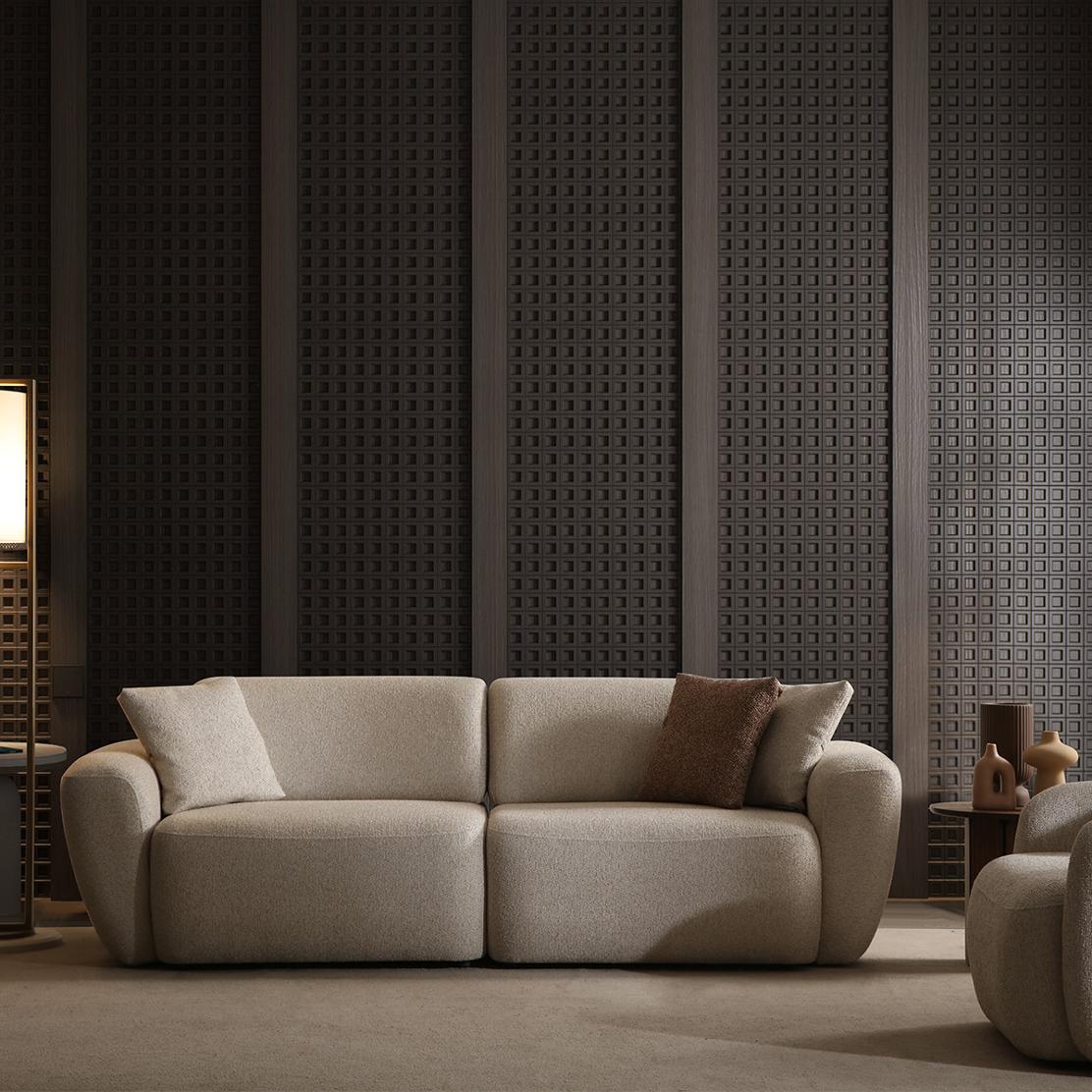 Триместният диван Gucci съчетава модерен дизайн, топла текстура и интуитивна функционалност. Тапициран в качествена дамаска, поставен върху стабилни дървени крака и изпълнен с високоеластична пяна 30DNS, моделът осигурява идеален баланс между мекота, опора и устойчивост. Подходящ за компактни или средно големи дневни, той effortlessly се вписва в светли, минималистични и скандинавски интериори.