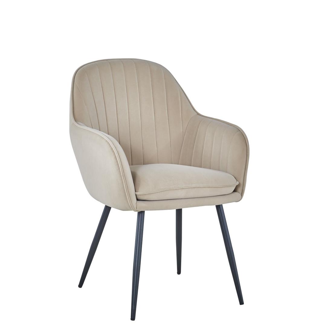 Трапезен стол К-313 е стол за хранене с метални черни крака и дамаска бежов плюш. Столът с подлакътници предлага голям комфорт, за да може напълно да се насладите на времето прекарано около масата. Седалката на стола е с отделна възглавница, допринасяща за допълнителна мекота.