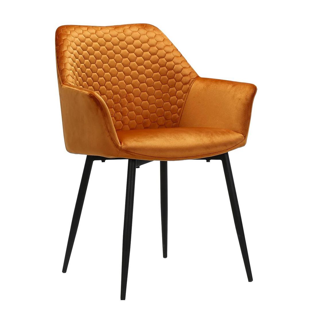 Модерният трапезен стол с метални черни крака и ефектна дамаска в оранжев цвят е изключително стилен избор за всеки интериор. Съчетанието на яркия цвят и елегантната дамаска придава на стола уникален и запомнящ се вид, който може да се превърне в акцент във всяка стая. Металните крака осигуряват здравина и стабилност, докато текстилната дамаска добавя допълнителен комфорт и мекота при сядане. Този стол не само че е функционален и удобен, но и е създаден да допринесе за модерната атмосфера в дома или офиса. Подходящ е както за домашна употреба, така и за обзавеждане на заведения, като същевременно предлага лесна поддръжка и дълготрайност.