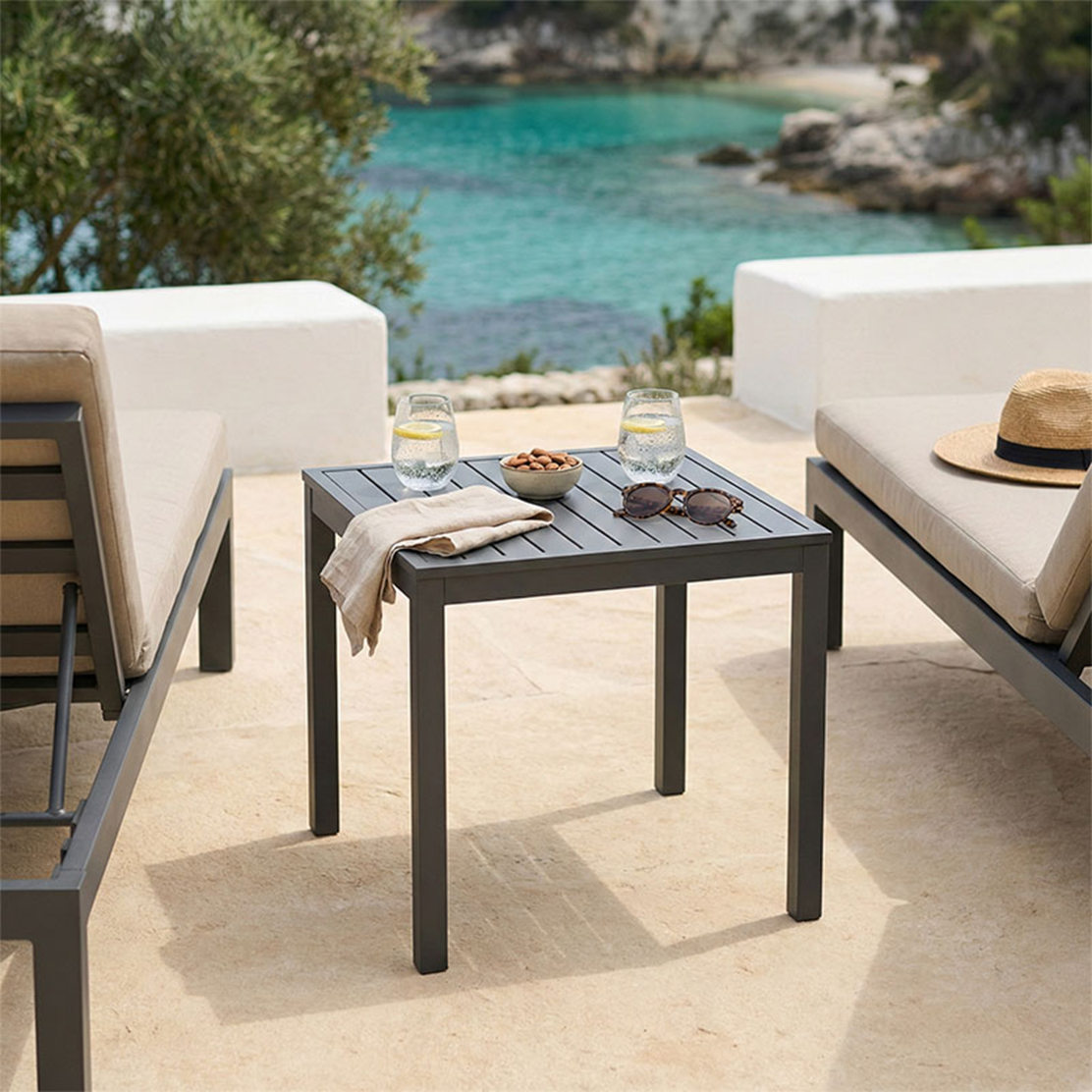 Открийте маса KLITON – изящно допълнение към всяка външна зона. Изработена от висококачествен алуминий, тя предлага не само модерен стил, но и изключителна издръжливост срещу атмосферните влияния, гарантирайки дълготрайна красота и функционалност.