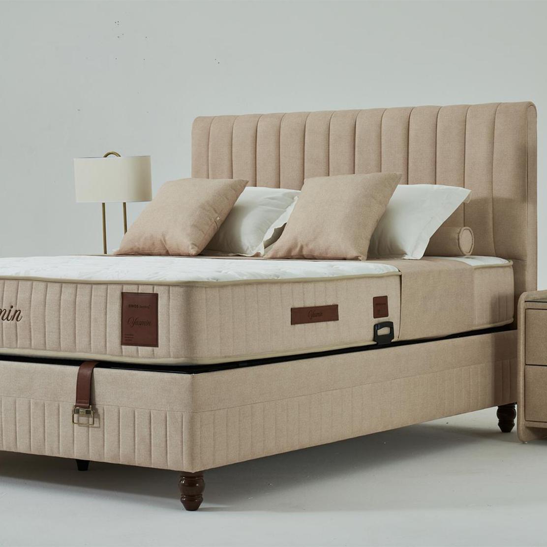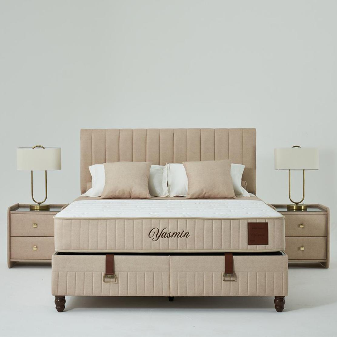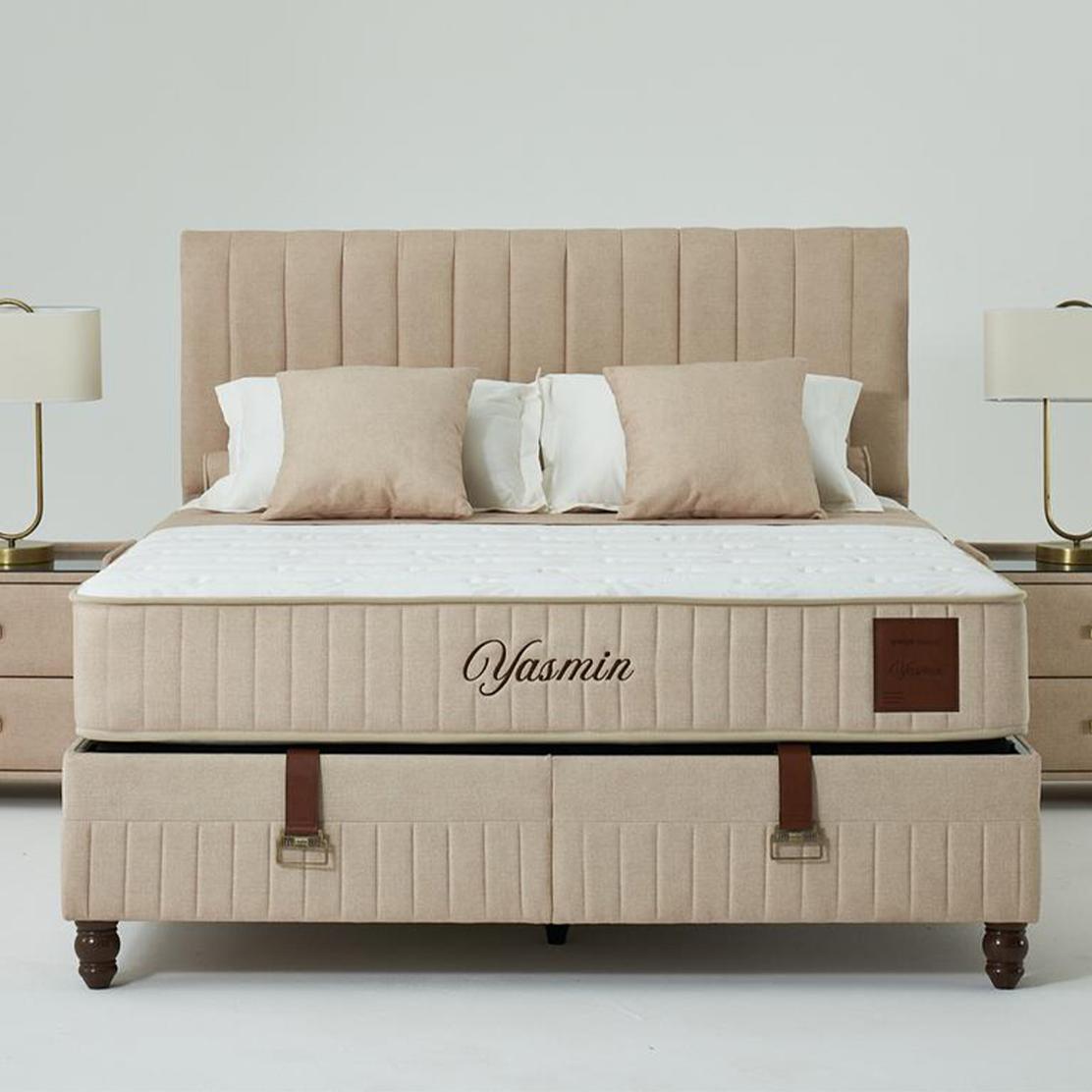 Комплектът YASMIN е създаден за хора, които търсят едновременно стил, стабилност и комфорт. Съчетава тапицирано легло с повдигащ механизъм и анатомичен матрак със структура от покет пружини, създавайки цялостно решение за уют, функционалност и премиум усещане в спалнята. Моделът се предлага в един цвят на дамаската и е наличен за размер 160/200 см, което го прави идеален избор за модерни жилища.