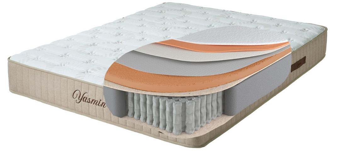 Матракът YASMIN комбинира покет пружини и няколко слоя комфортни материали: