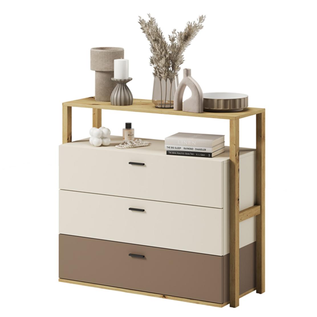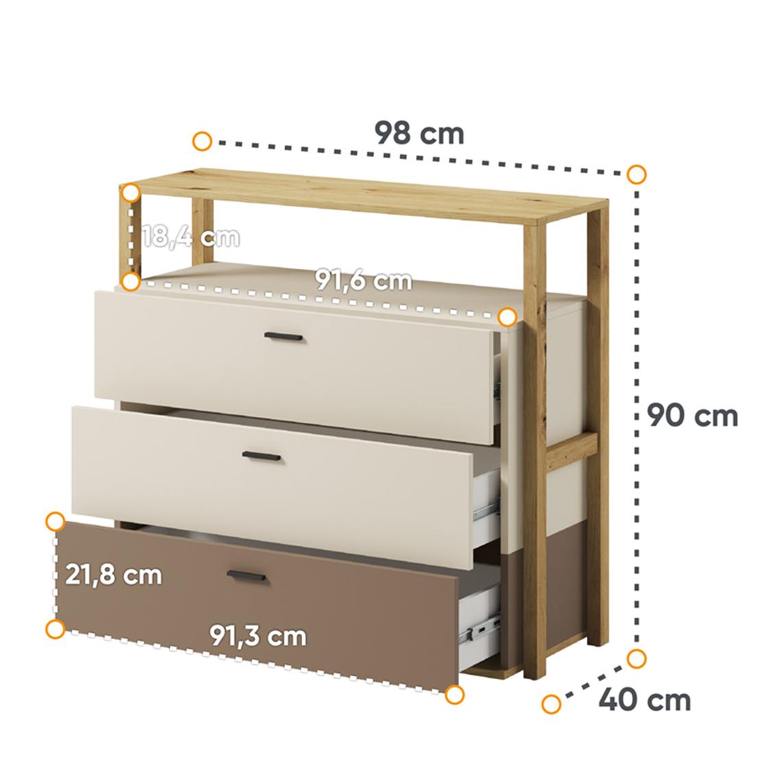 Изработен от висококачествено ПДЧ, той гарантира надеждност и дълготрайност. Трите чекмеджета с плавно затваряне предлагат оптимално пространство за съхранение на дрехи, играчки и съкровища, поддържайки стаята подредена и функционална.