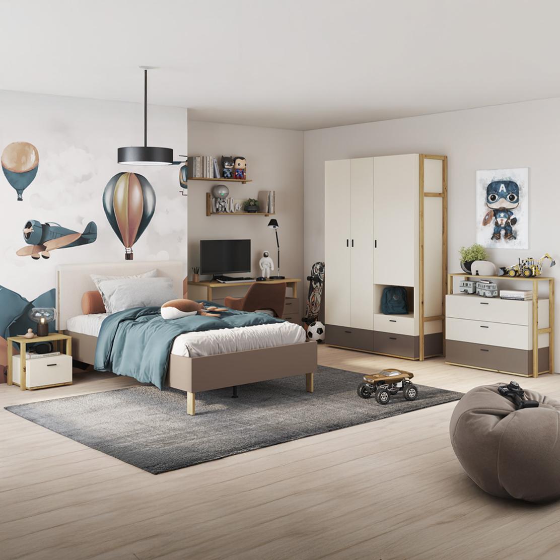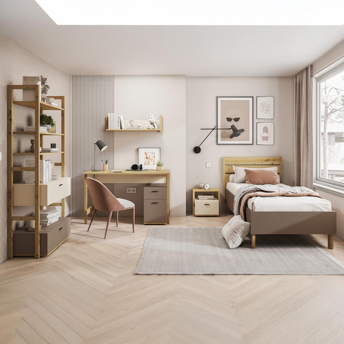 Открийте нощно шкафче LENNY – идеалното допълнение към вашата спалня, което съчетава елегантност и практичност. Неговият модерен дизайн в топли нюанси на дъб и бежово създава спокойна атмосфера, докато предлага удобно място за всичко необходимо.