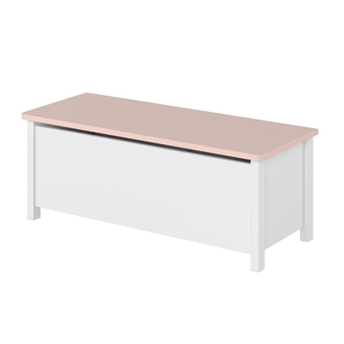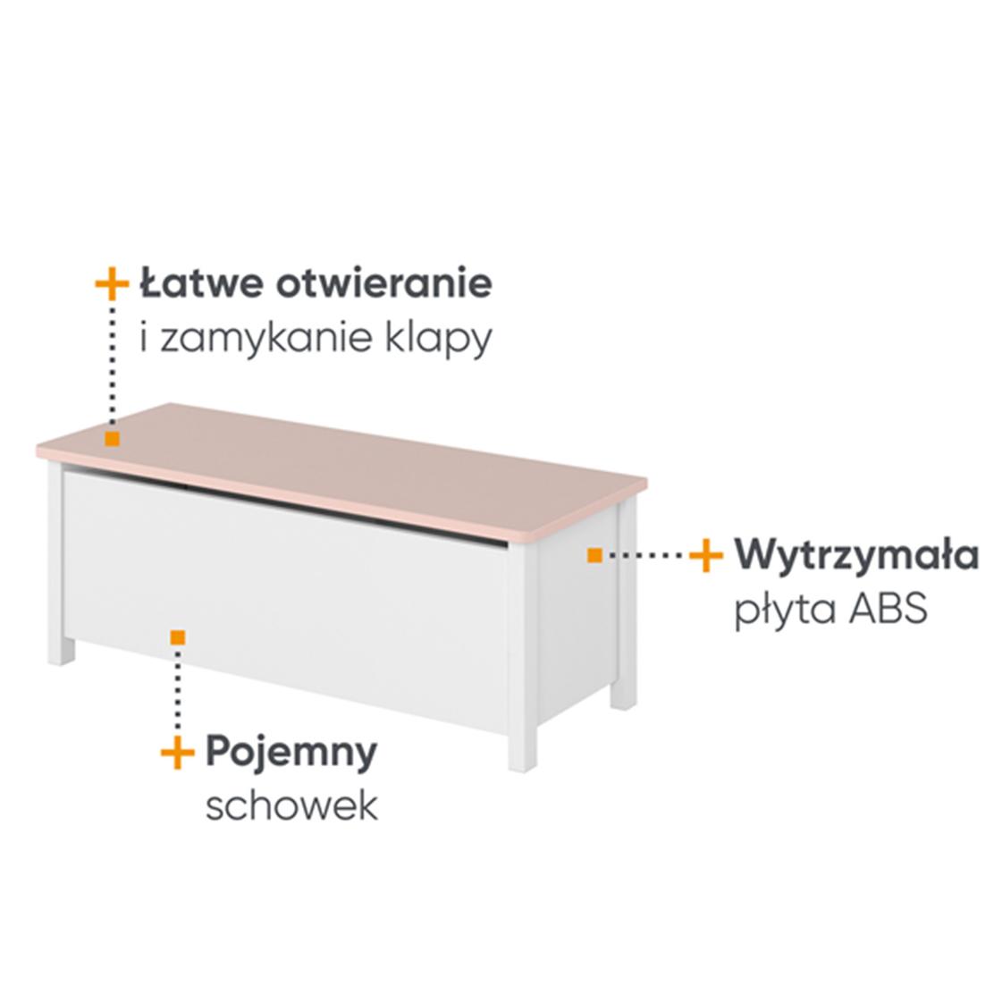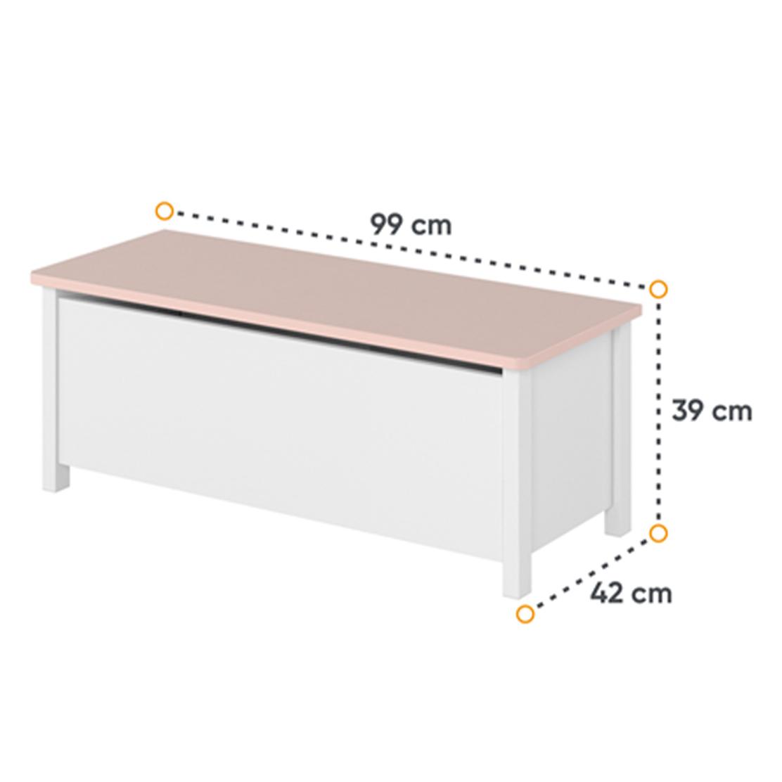 Изработен от висококачествено ПДЧ в комбинация от бяло и нежно розово, този шкаф не само е функционален, но и служи като елегантна пейка. Той е перфектното допълнение към детска стая, спалня или коридор, внасяйки свежест и модерен акцент.