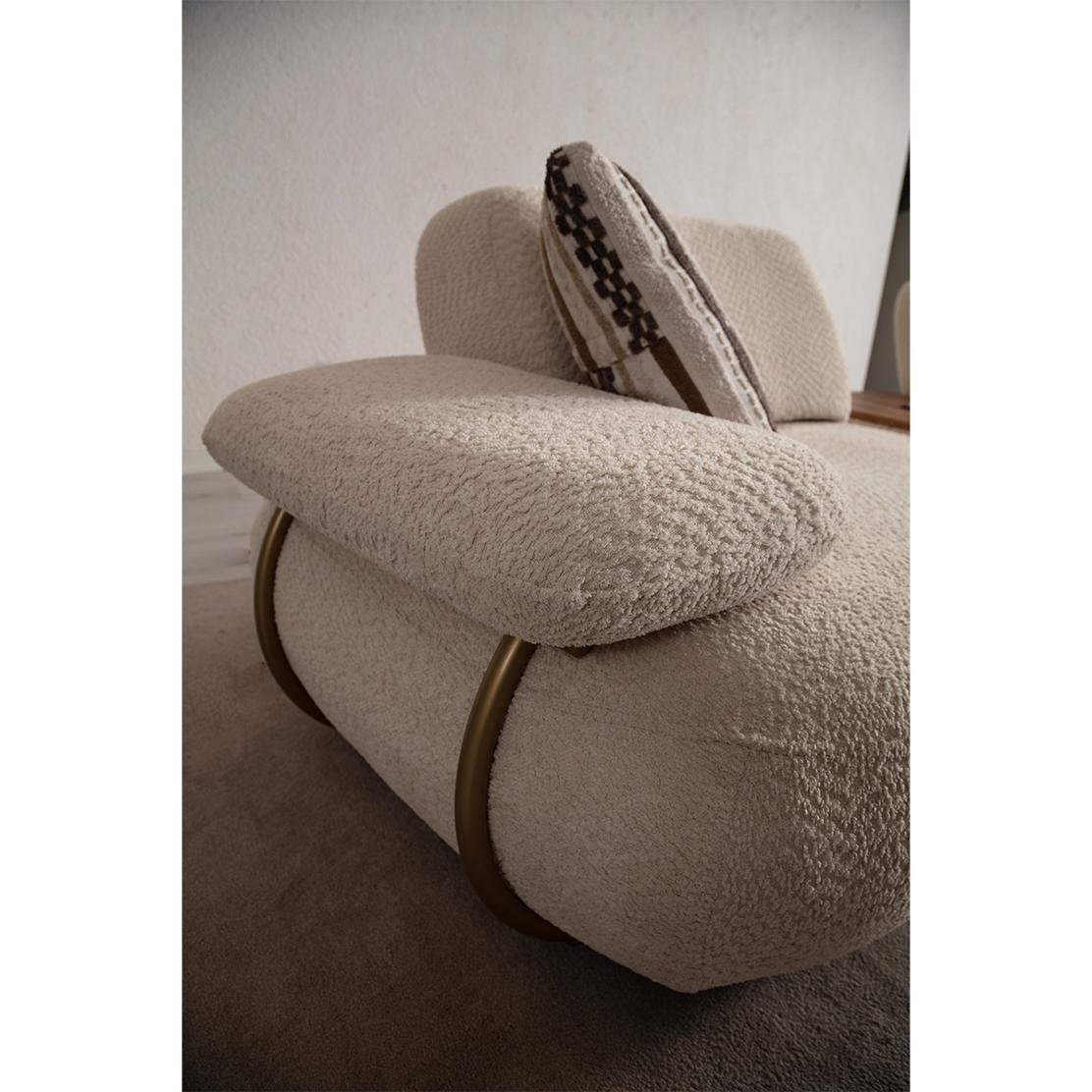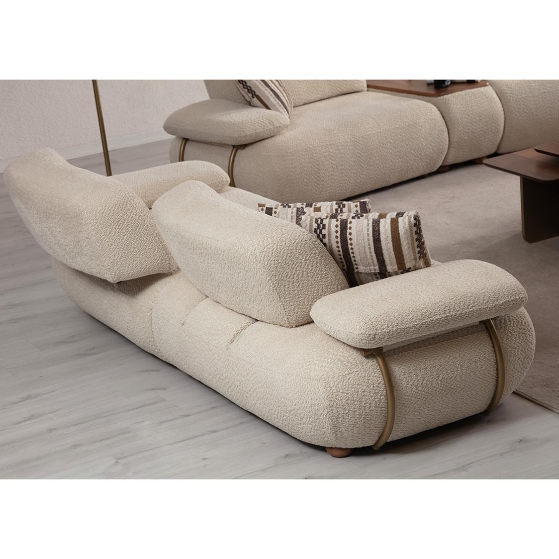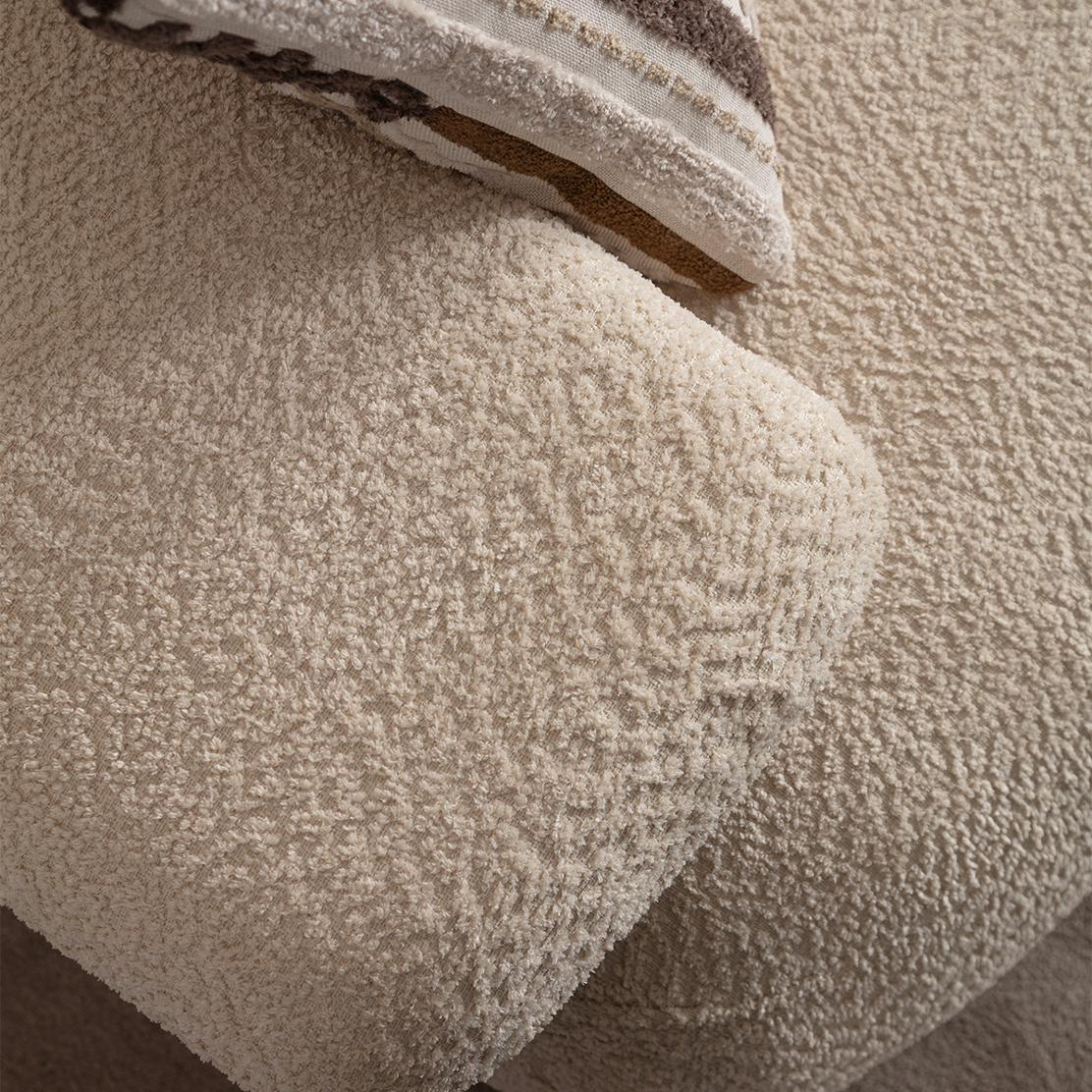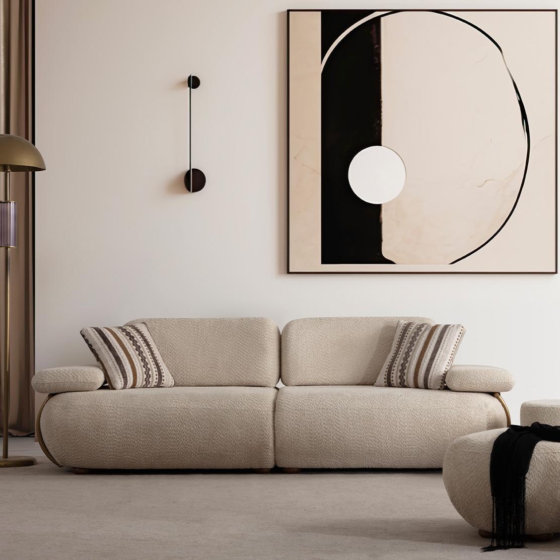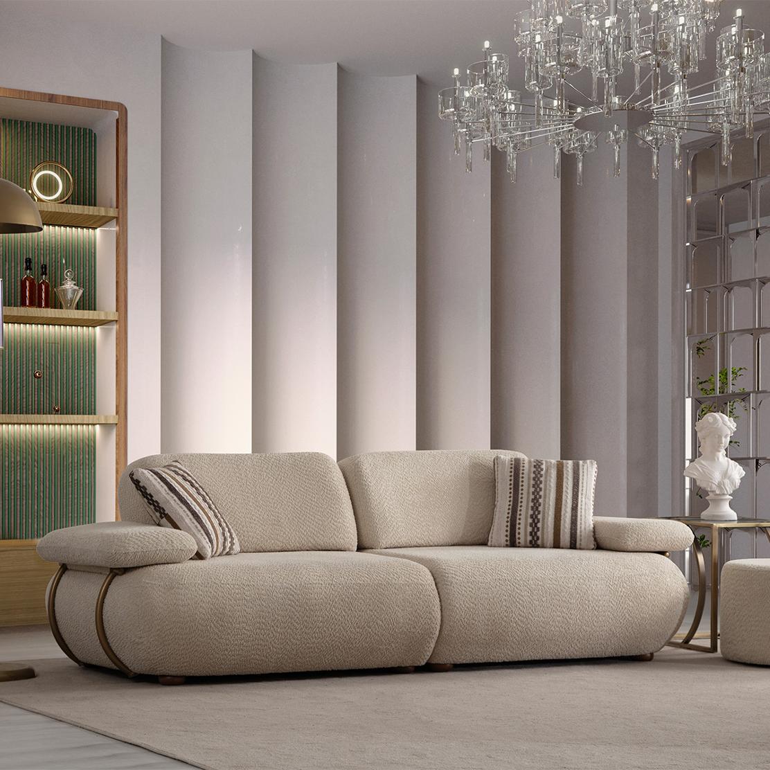 Боядисаните дървени крака придават топлина и визуална лекота на силуета, като повдигат конструкцията и подчертават модерния характер на модела. Фино интегрираните метални декоративни елементи добавят премерен акцент и създават впечатляващ баланс между меките текстури и модерния дизайн.