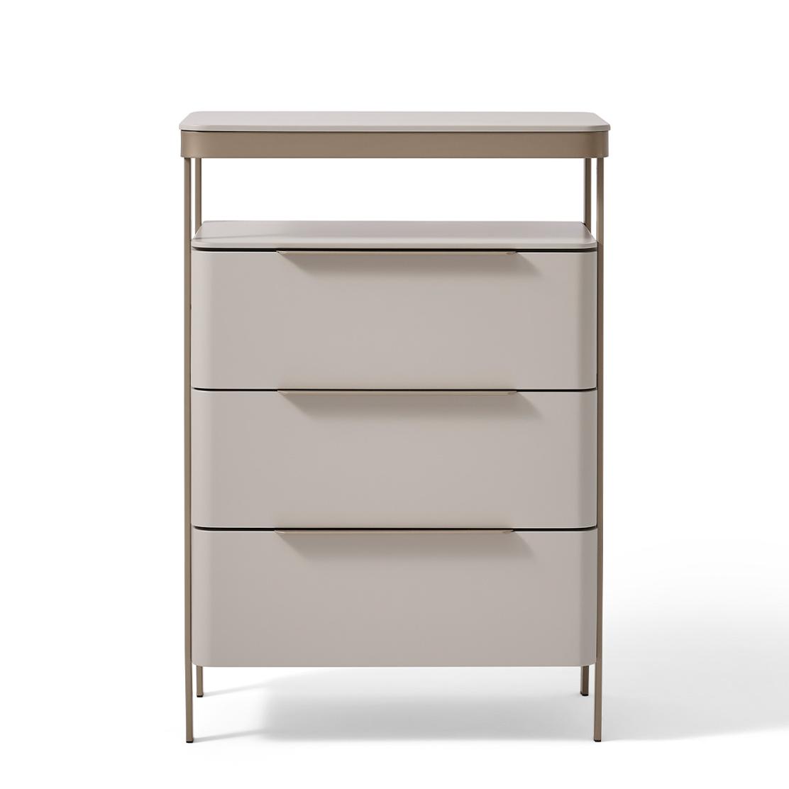 • Допълнителен отворен рафт над чекмеджетата за декорация или лесен достъп.
