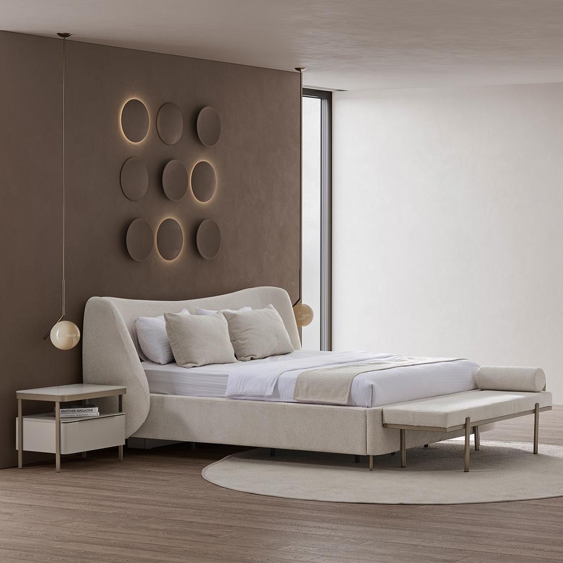 • Луксозно тапицирано легло в пясъчно бежово, осигуряващо мекота и уют.