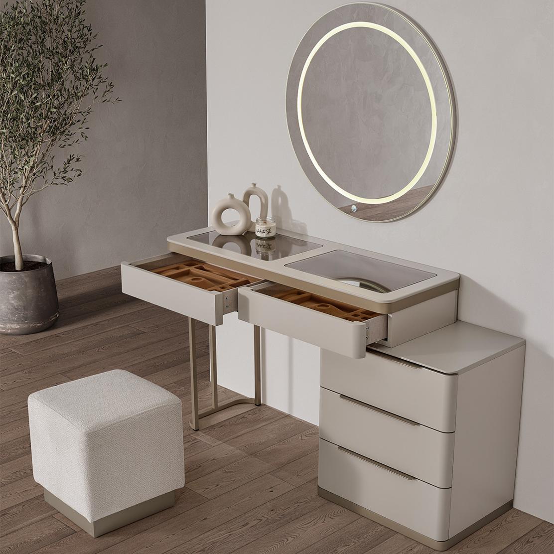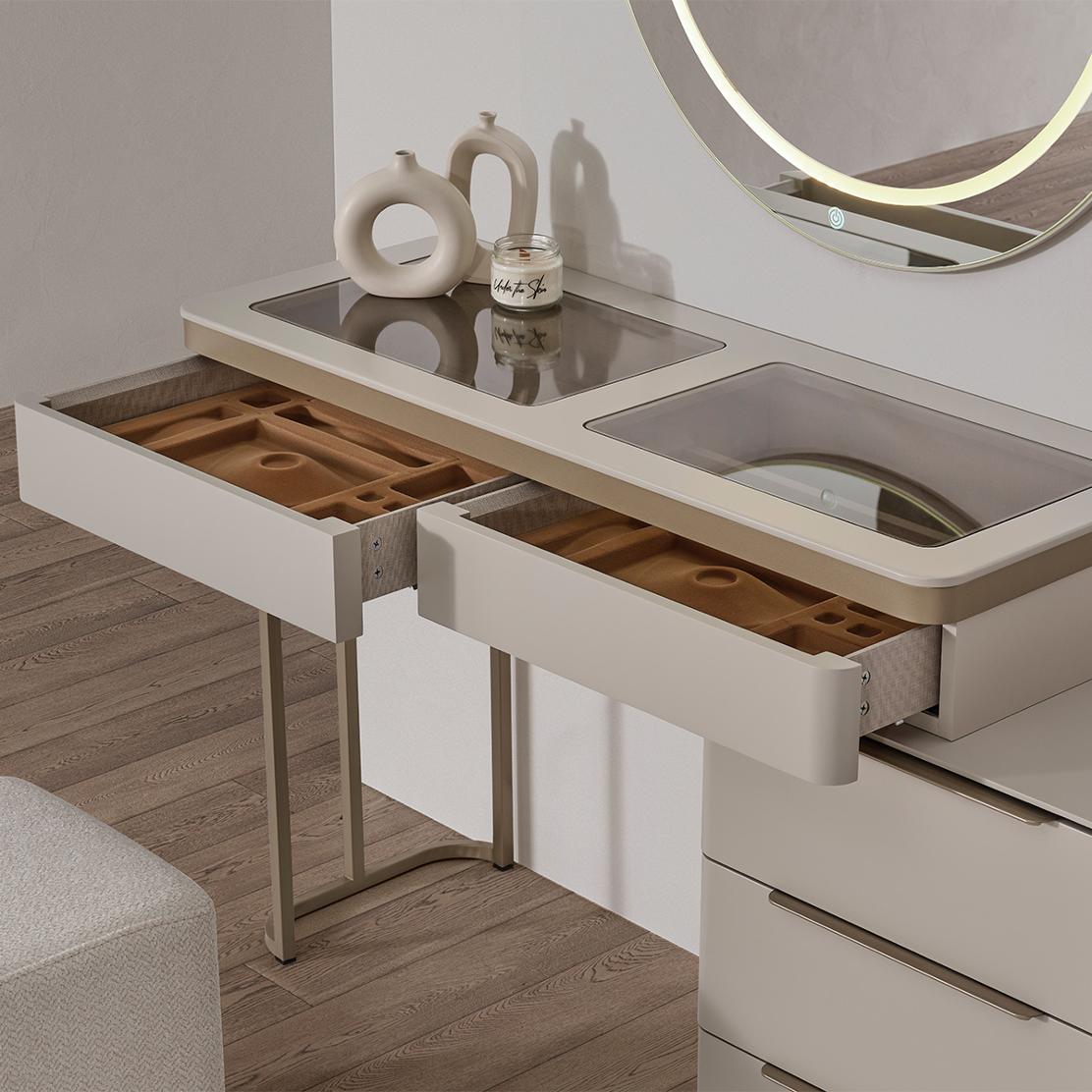 • Личен кът за красота – Огледало и организирано пространство за грим, бижута и аксесоари.