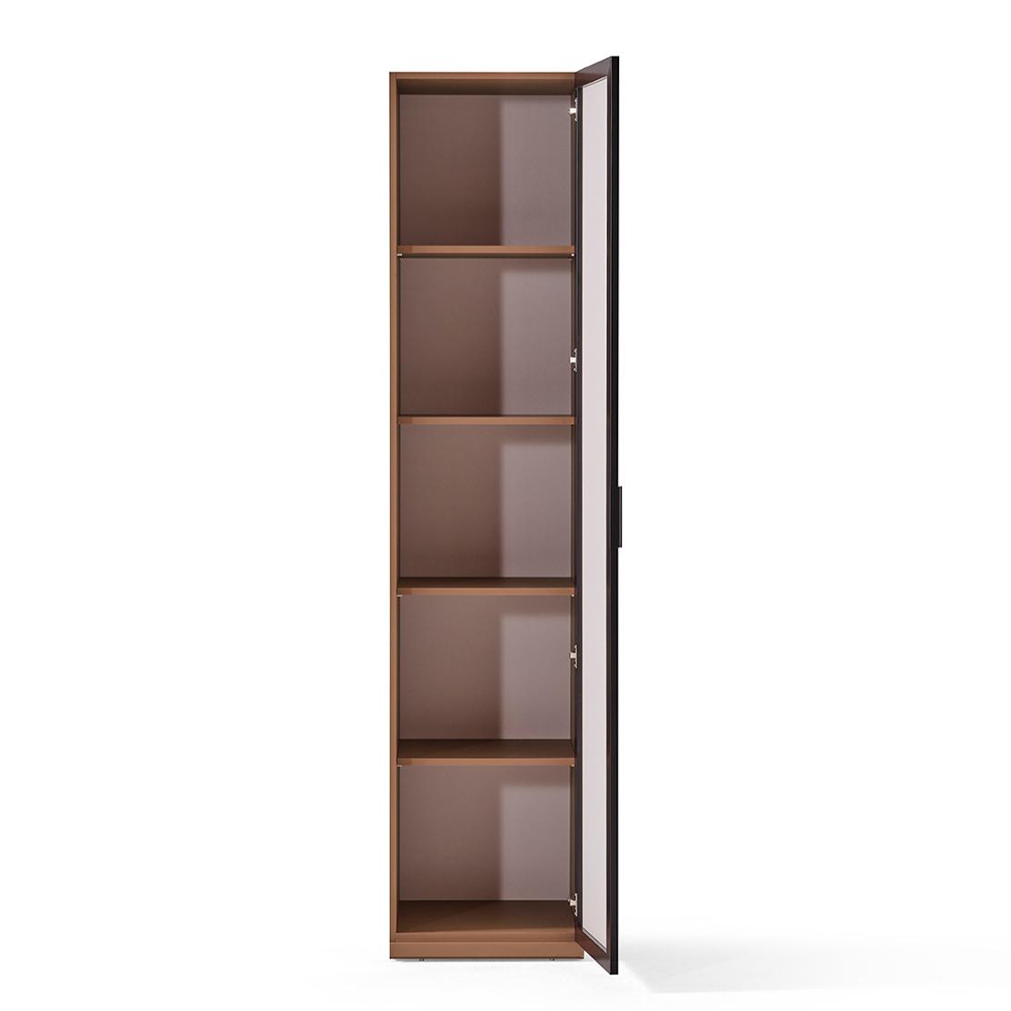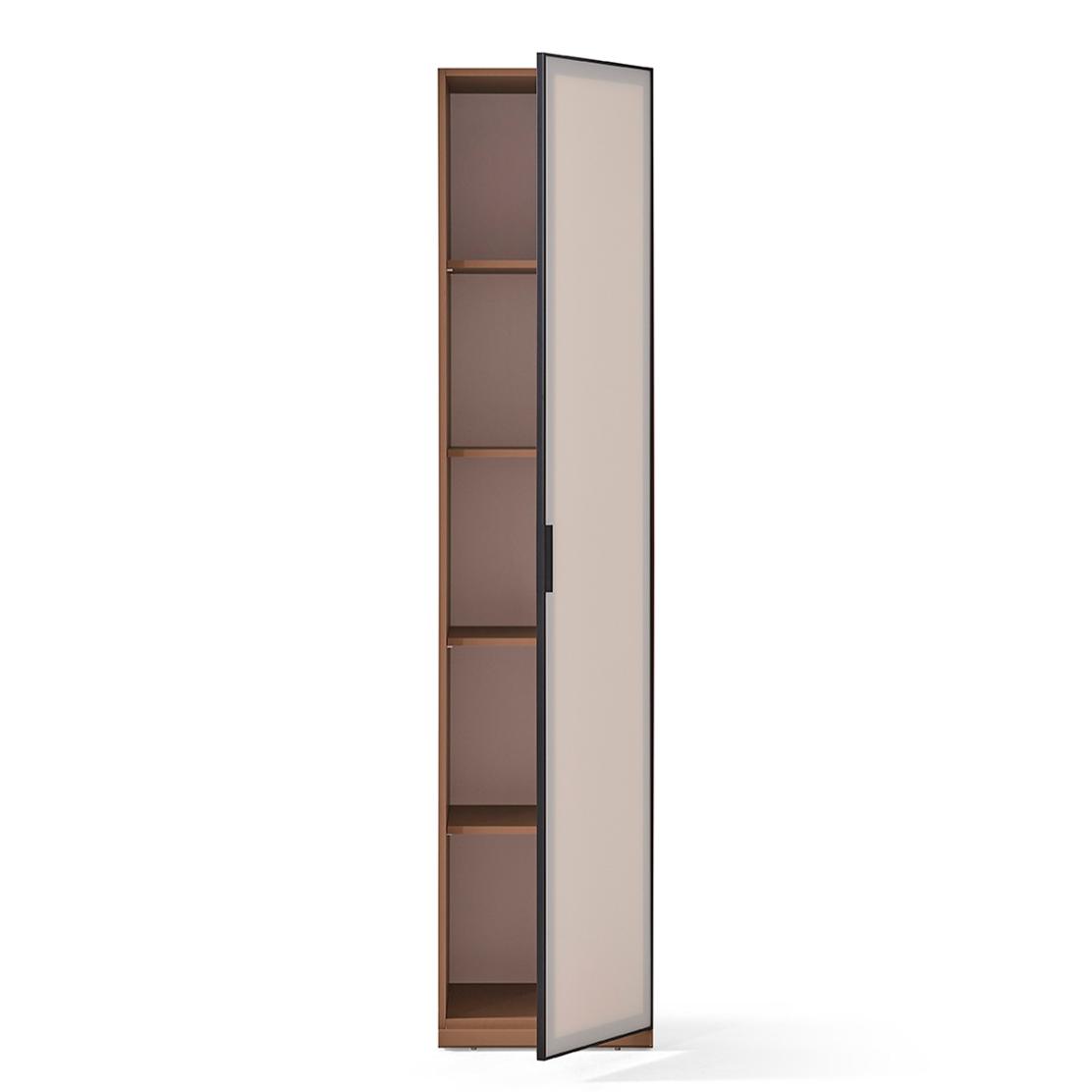 Открийте съвършенството с нашия еднокрилен гардероб от MDF, създаден да внесе стил и функционалност във вашето пространство. Лицата на вратите от MDF с боядисано темперирано стъкло предлагат изтънчена визия, докато здравият алуминиев профил гарантира дълготрайност и елегантност. Вътрешните рафтове предлагат оптимално разпределение, превръщайки гардероба в идеално решение за организиране на вашите вещи.
