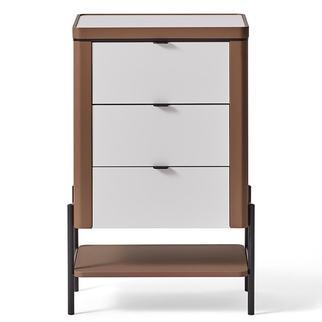 • Стилно съчетание на бял гланц и черни метални акценти.