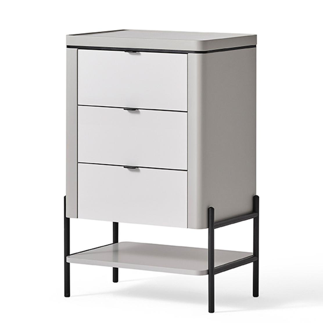 • Стилно съчетание на бял гланц и черни метални акценти.