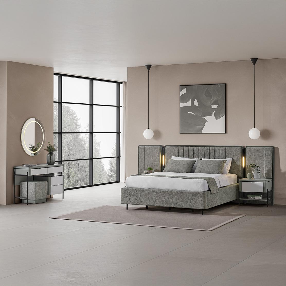 Потопете се в свят на изискан комфорт с тапицирано легло MOCHA. То предлага перфектна комбинация от модерен дизайн и върховна естетика, превръщайки спалнята ви в лично убежище. Неговата широка, визуално впечатляваща табла придава хармонична цялост на пространството.