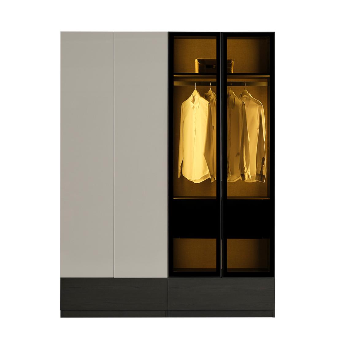 Вграденото LED осветление подчертава вътрешното пространство и осигурява отлична видимост, дори при слаба светлина. Лостът за закачалки осигурява удобство при организацията на дрехи, ризи и сака, като същевременно запазва изчистената визия на гардероба.