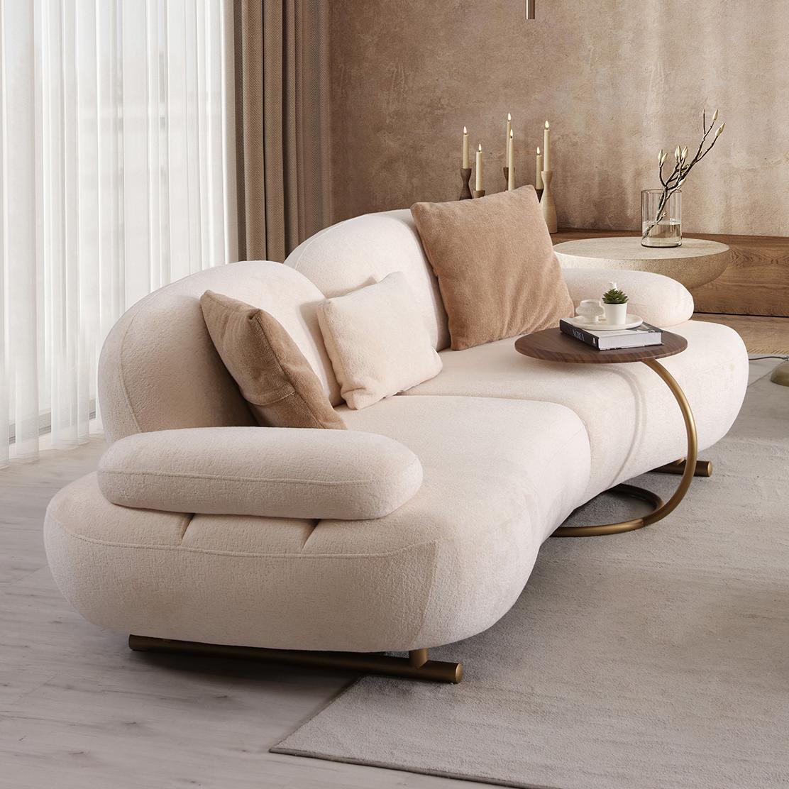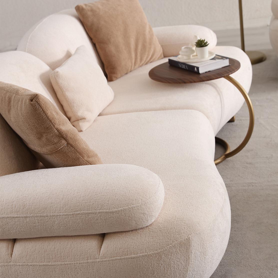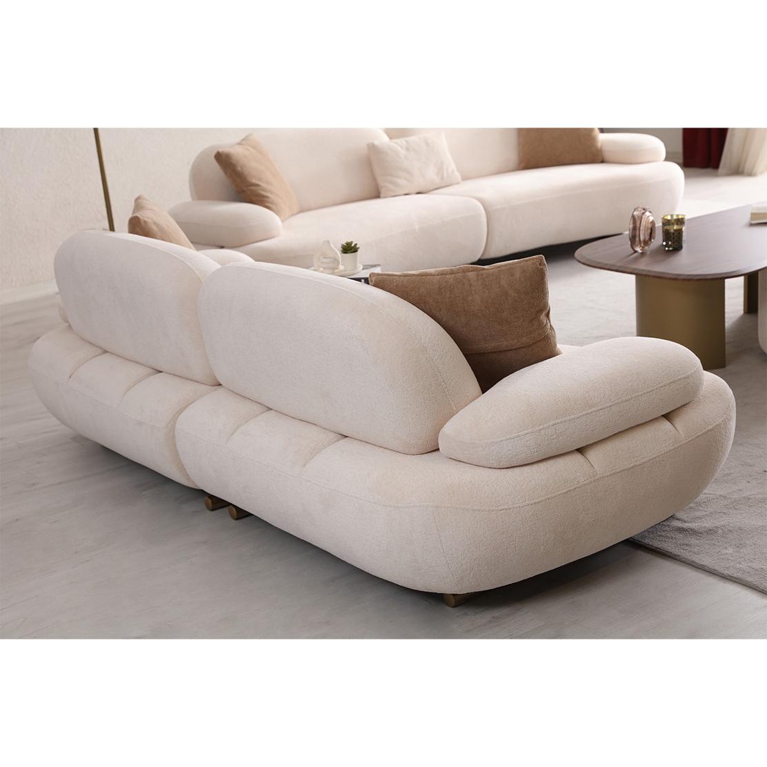 Металните крака придават модерна линия и визуална лекота. Те повдигат дивана, улесняват почистването и подчертават съвременния характер на модела, правейки го подходящ за интериори в минималистичен, скандинавски или градски стил.