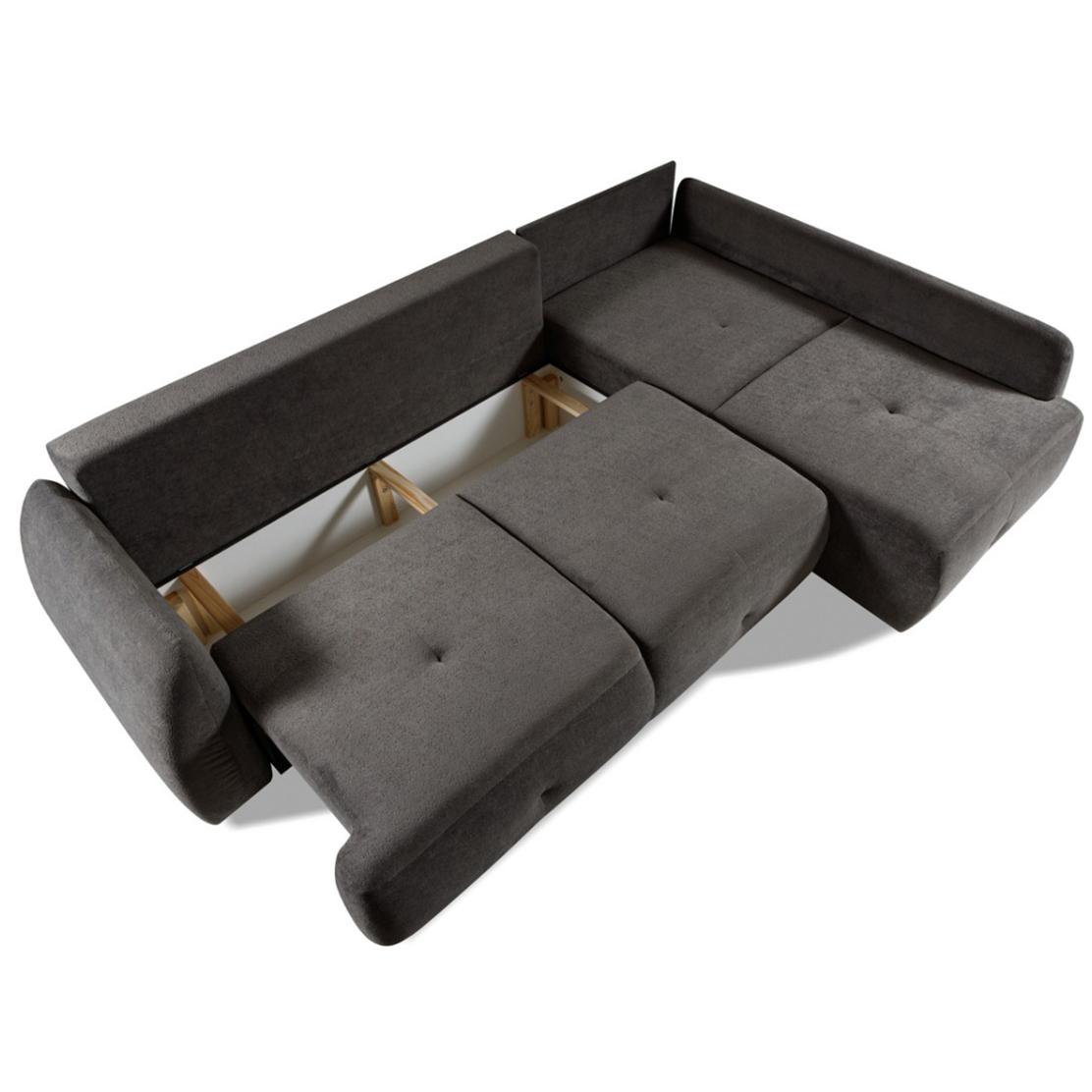 Този ъглов диван впечатлява със своя модерен дизайн и елегантно заоблени форми, които придават мекота и стил на всяко помещение. Той е изключително комфортен и функционален, идеален за почивка и събирания с близки.