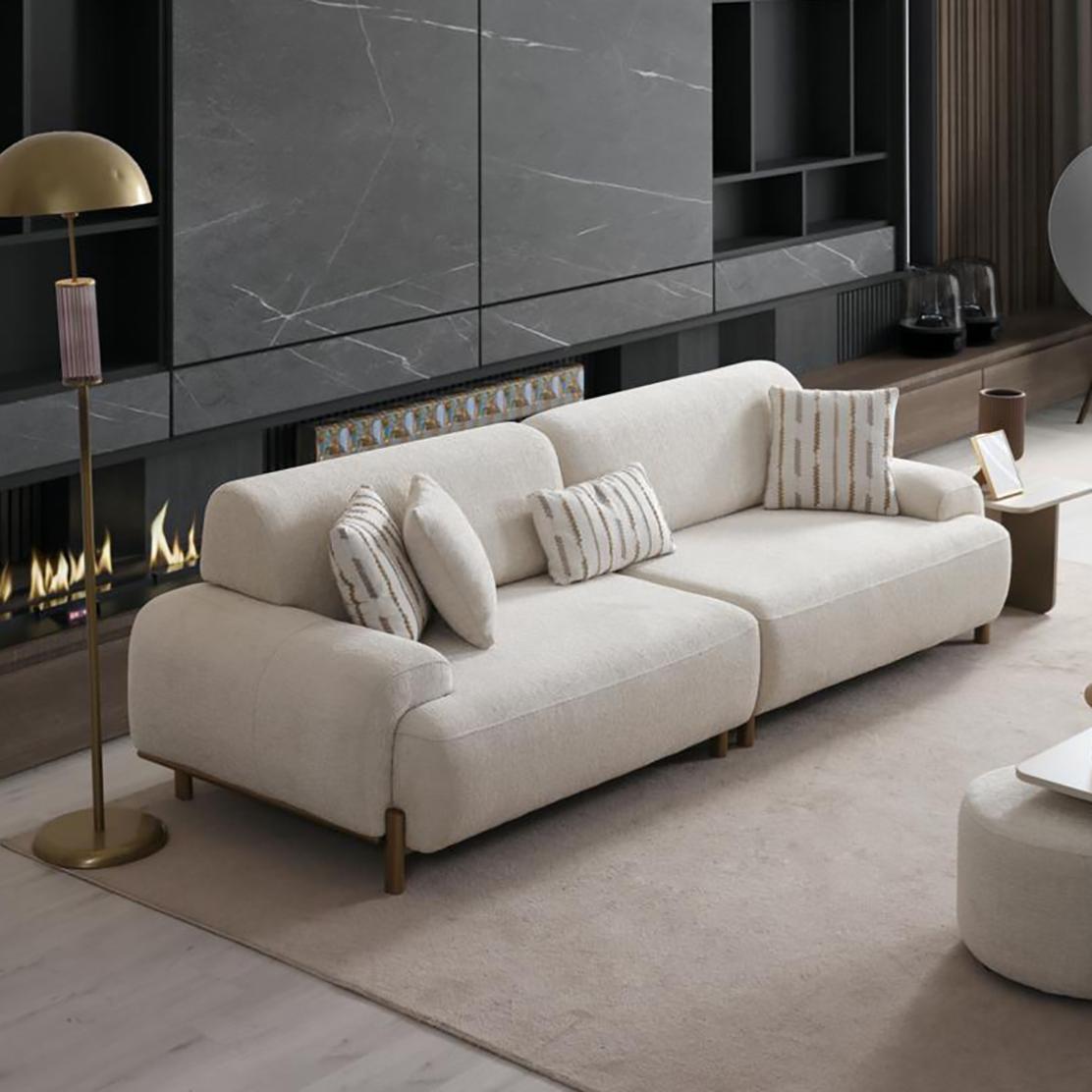 Триместният диван Pera е изискан избор за съвременната дневна, съчетаващ мек визуален баланс, функционалност и премиум изработка. Създаден за ежедневен комфорт, моделът впечатлява с висококачествена дамаска, меки линии и избор между метална или дървена основа, което позволява да го впишете идеално в своя интериорен стил.