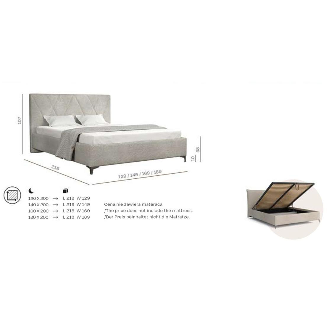 • Функционалности: Ламелна подматрачна рамка, повдигащ механизъм с амортисьори, място за съхранение.