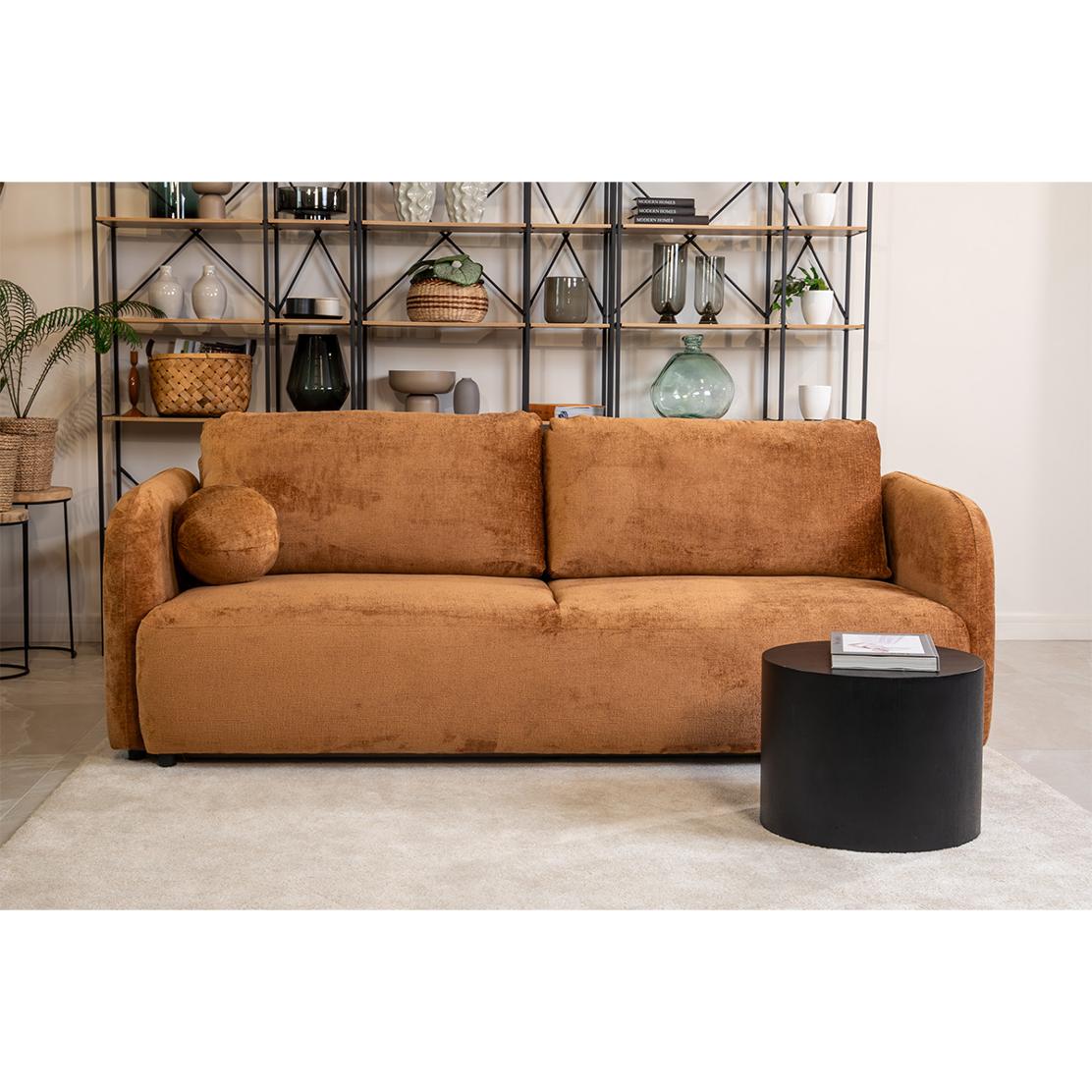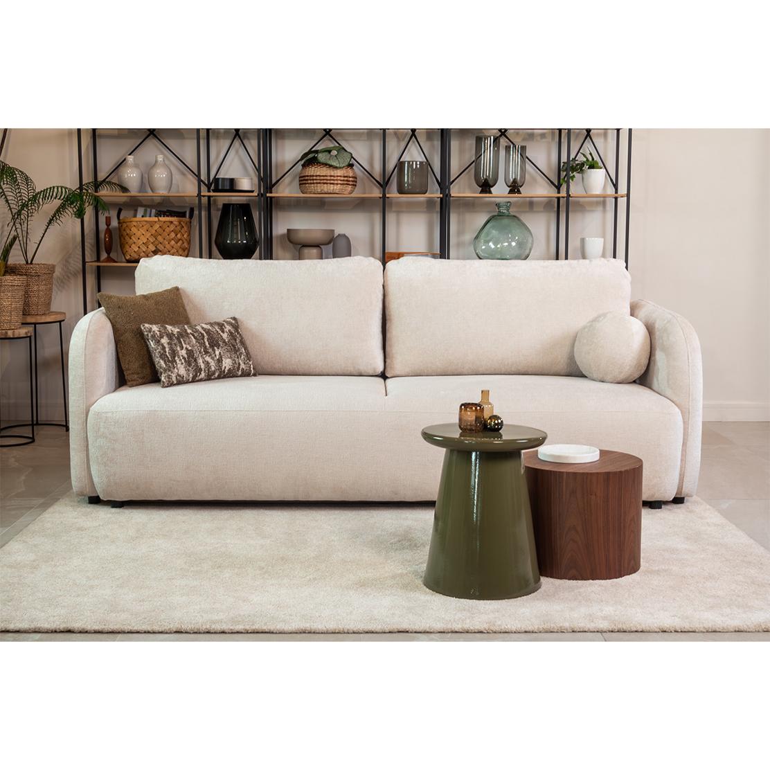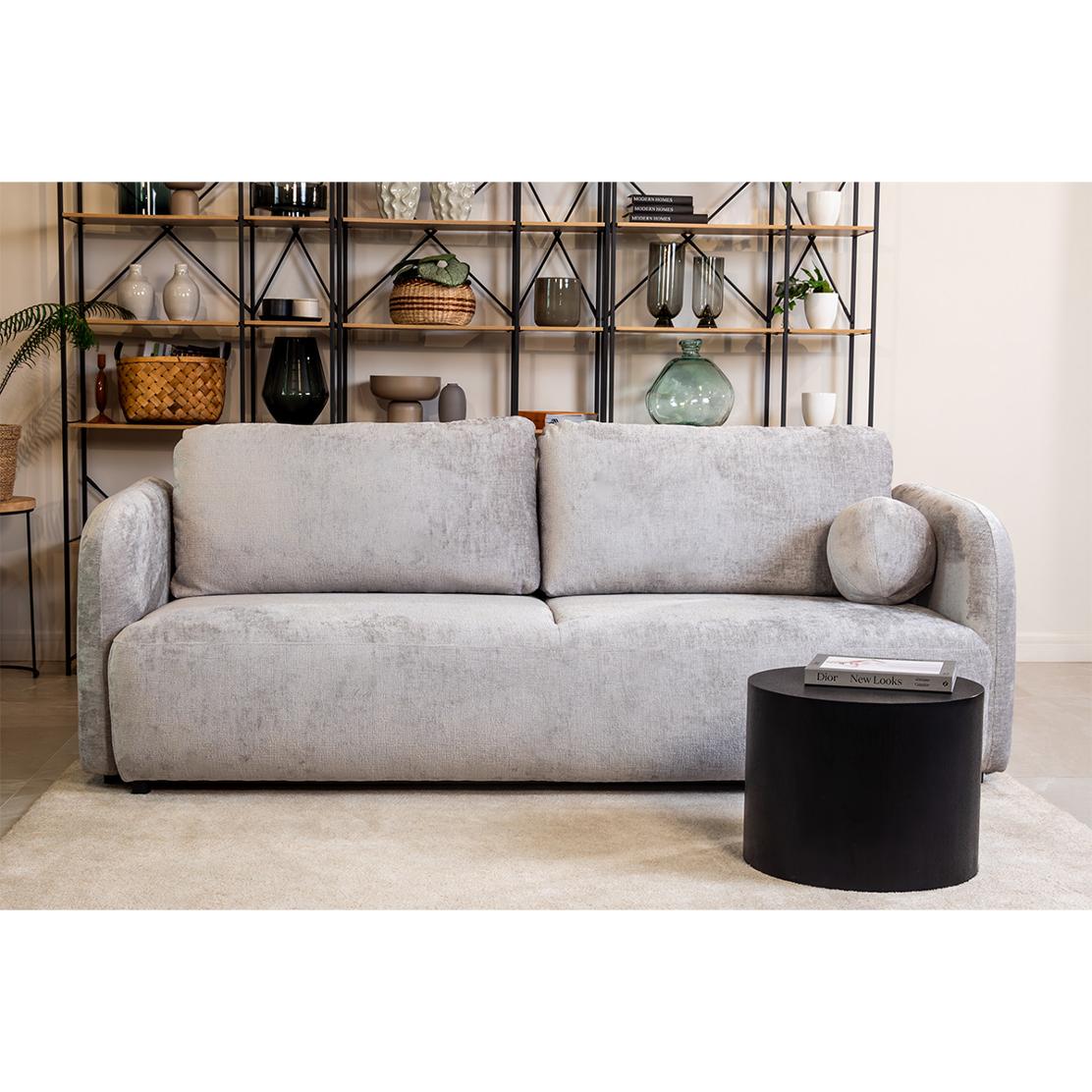 Диванът "SANTIAGO" предлага елегантен дизайн, който се характеризира с изчистени линии и заоблени ъгли, добавяйки модерен и стилен акцент към всяко помещение. Съчетанието от функционалност и естетика се отразява в практичното място за съхранение, което е идеално за подреждане на спално бельо и други предмети, докато декоративната кръгла възглавничка придава завършен вид на цялостната композиция. Освен това, функцията сън осигурява удобство и комфорт, превръщайки дивана в идеално място за отдих и релаксация. Този диван е перфектният избор за тези, които търсят качество и функционалност, увенчани с безупречен дизайн.