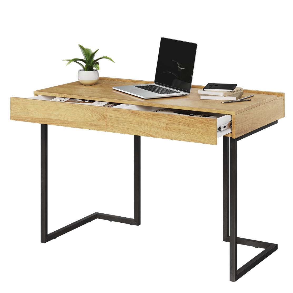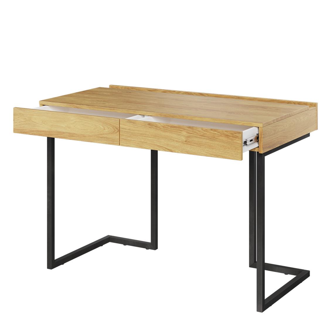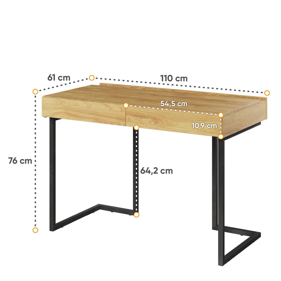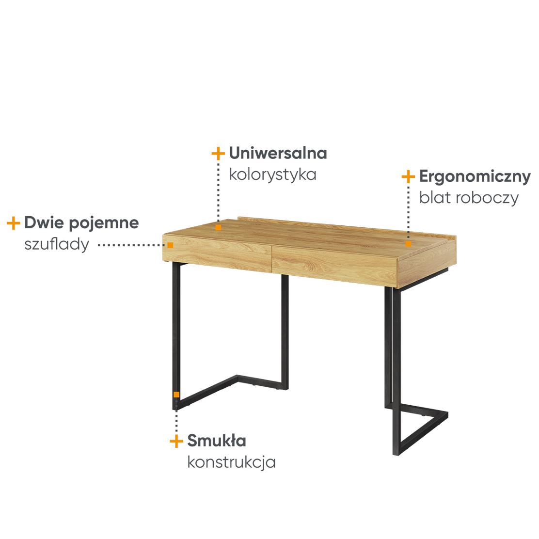 Това модерно бюро съчетава индустриална визия с удобство и функционалност. Здравите метални крака осигуряват стабилност и устойчивост, а плотът в топъл дървесен цвят е изработен от висококачествено ПДЧ, гарантиращо дълготрайна употреба.