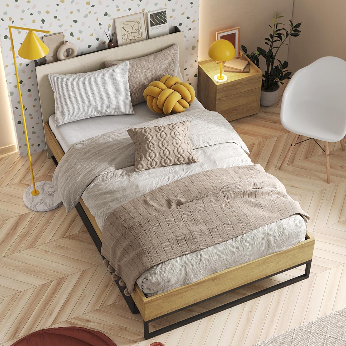 Детайлите правят разликата – едната страна на леглото е с модерни метални крака, а вграденото енергизиращо оранжево осветление придава уют и създава приятна атмосфера в стаята, както за игра, така и за почивка.