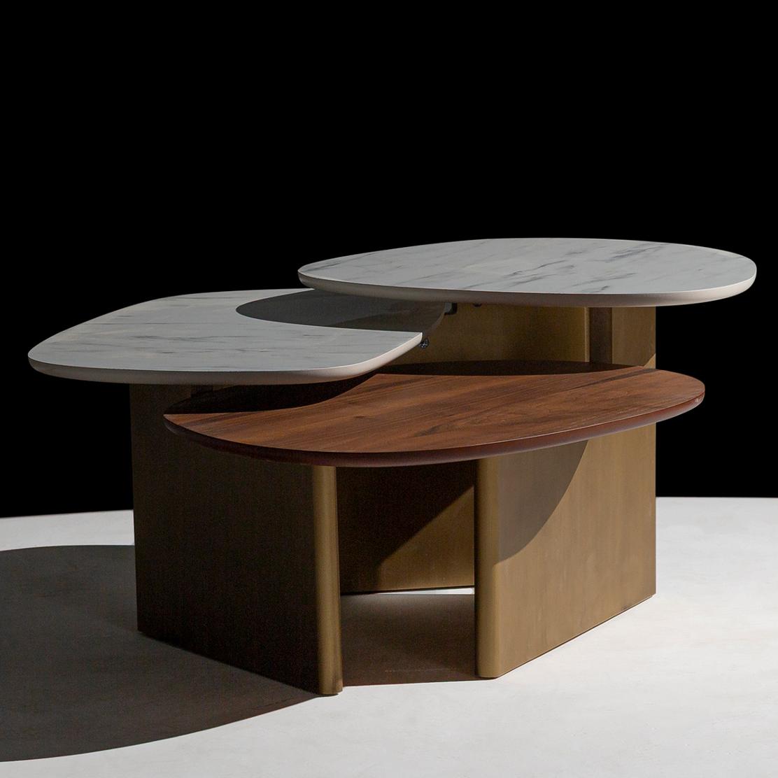 Със своите интелигентно разположени нива, масата предлага практичност и динамика. Тя е идеална за сервиране, подреждане на декорации или просто за приятни моменти с близки. Инвестирайте в мебел, която съчетава красота и адаптивност за всеки дом.